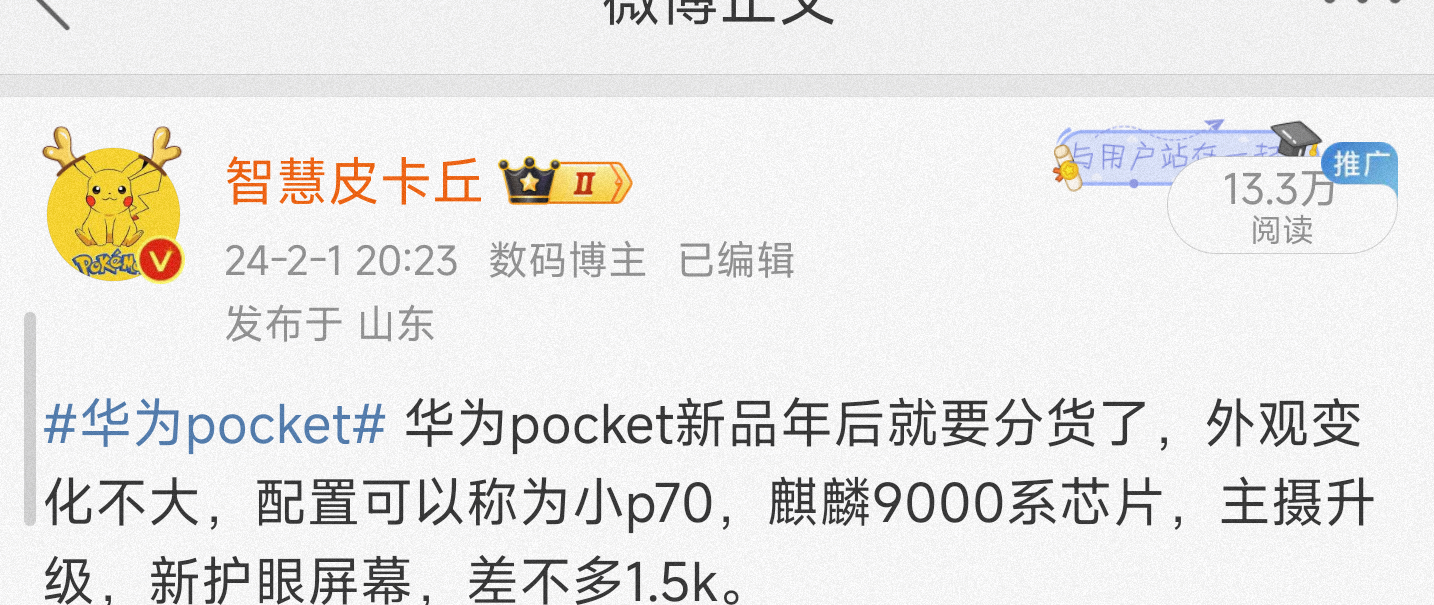 #华为pocket# 华为pocket2官宣2月22号,这次还有一些穿戴配件。