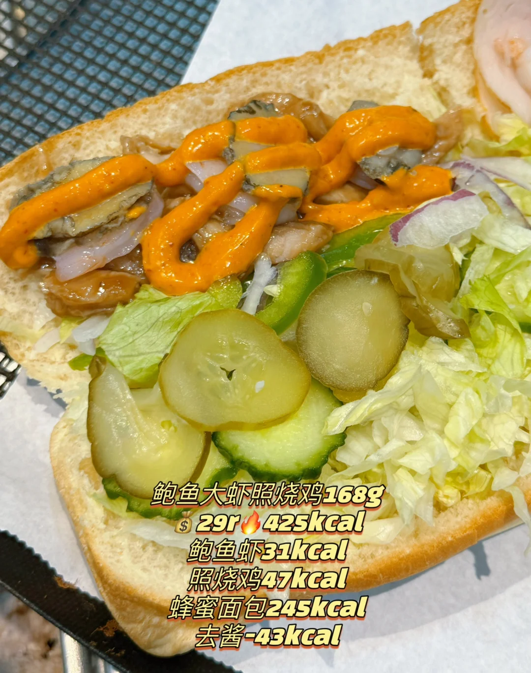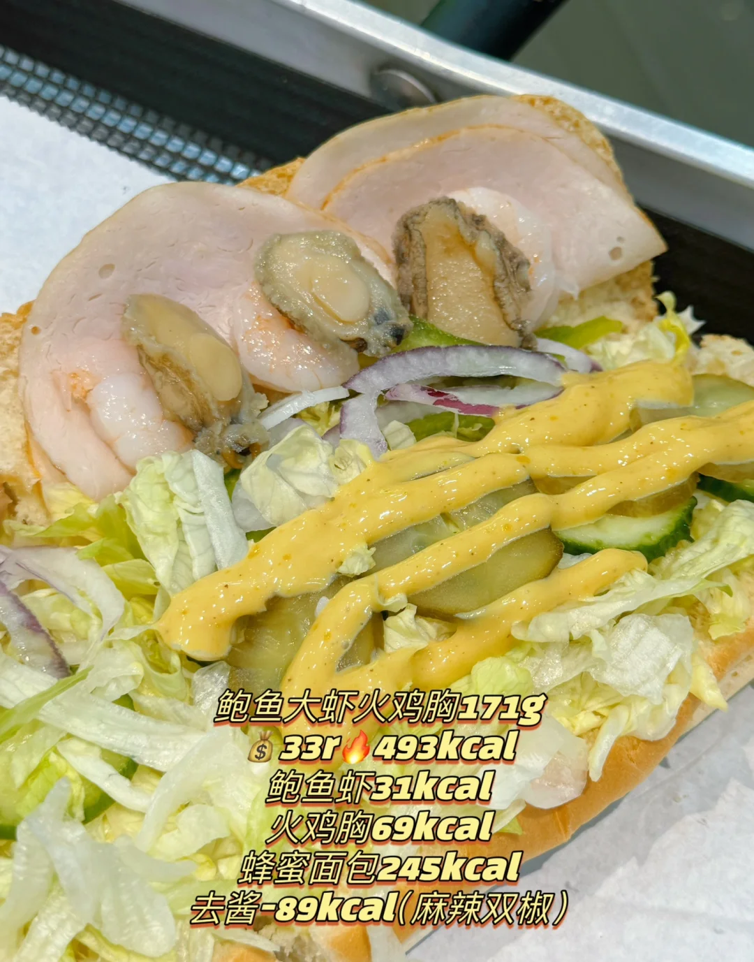 赛百味热量实测‼️低卡鲍鱼大虾三明治🦐