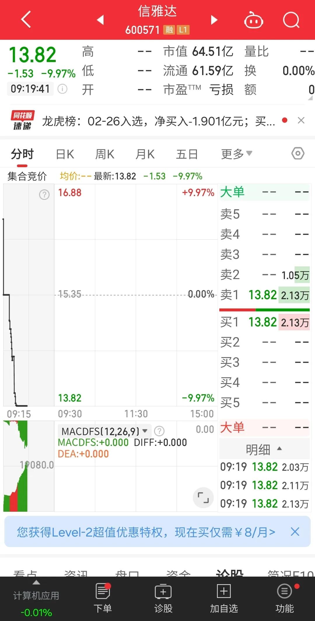 二六三、信雅达,竞价都临近跌停,大哥克莱机电还能顶多久?