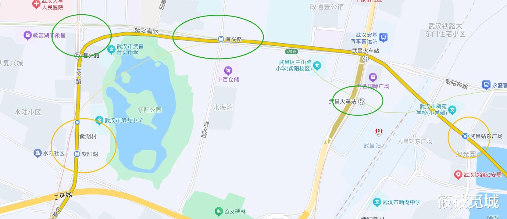 另外4号线武昌火车站到复兴路中间设有首义路站,从地图上看11号线武昌站东广场到紫阳湖区间比4号线武昌火车站到复兴路的区间更大,但是中间没有设站,且11号线还经过4号线复兴路站,不知为何没在此设站。