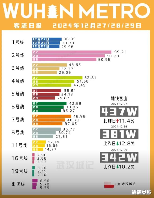 大家发现没有,2020年后,武汉新开通的地铁客流量都差点意思?曾经大家都说8号线二期三期开通后能分流一部分2号线汉口到武昌的客流,结果8号线二期客流拉垮,导致8号线整体客流在市区线路中处于末尾。