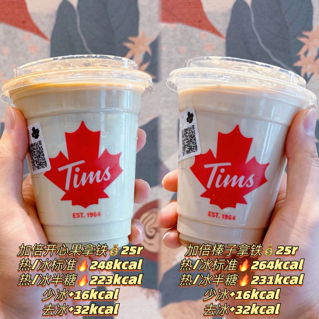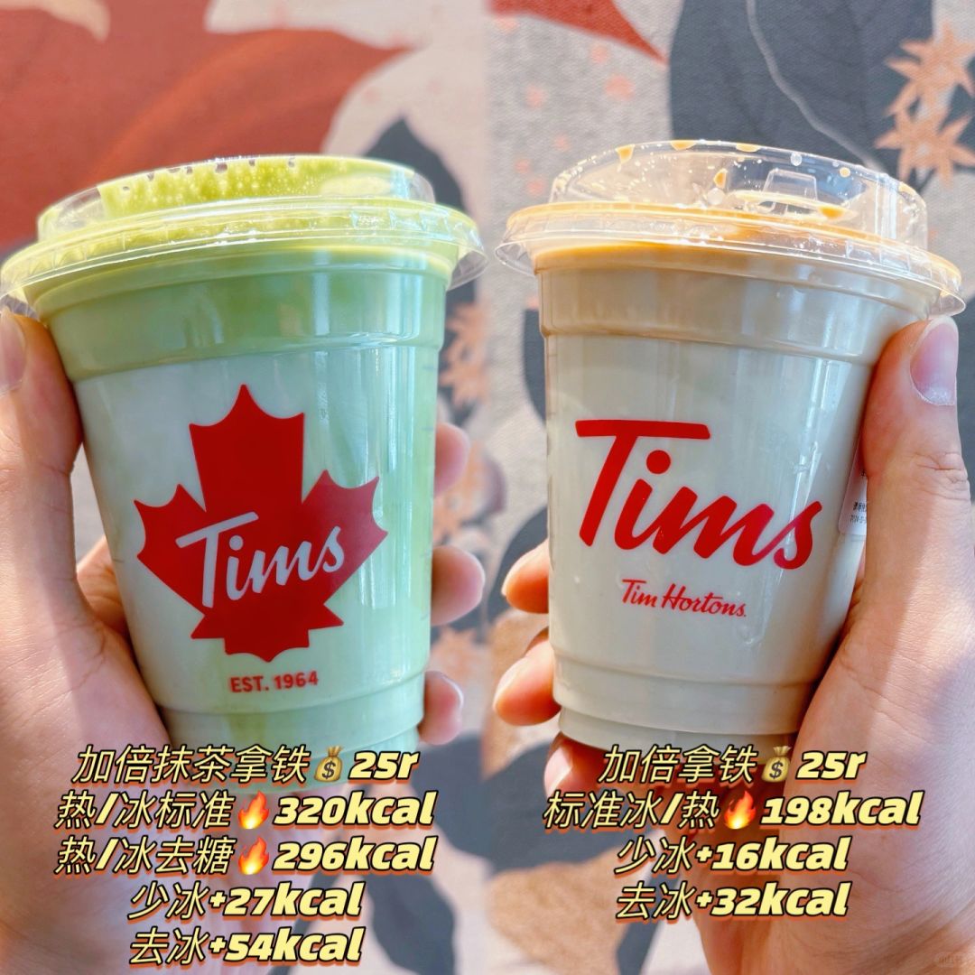 Tims新品热量‼️加倍抹茶拿铁🍵开心果🌰9款