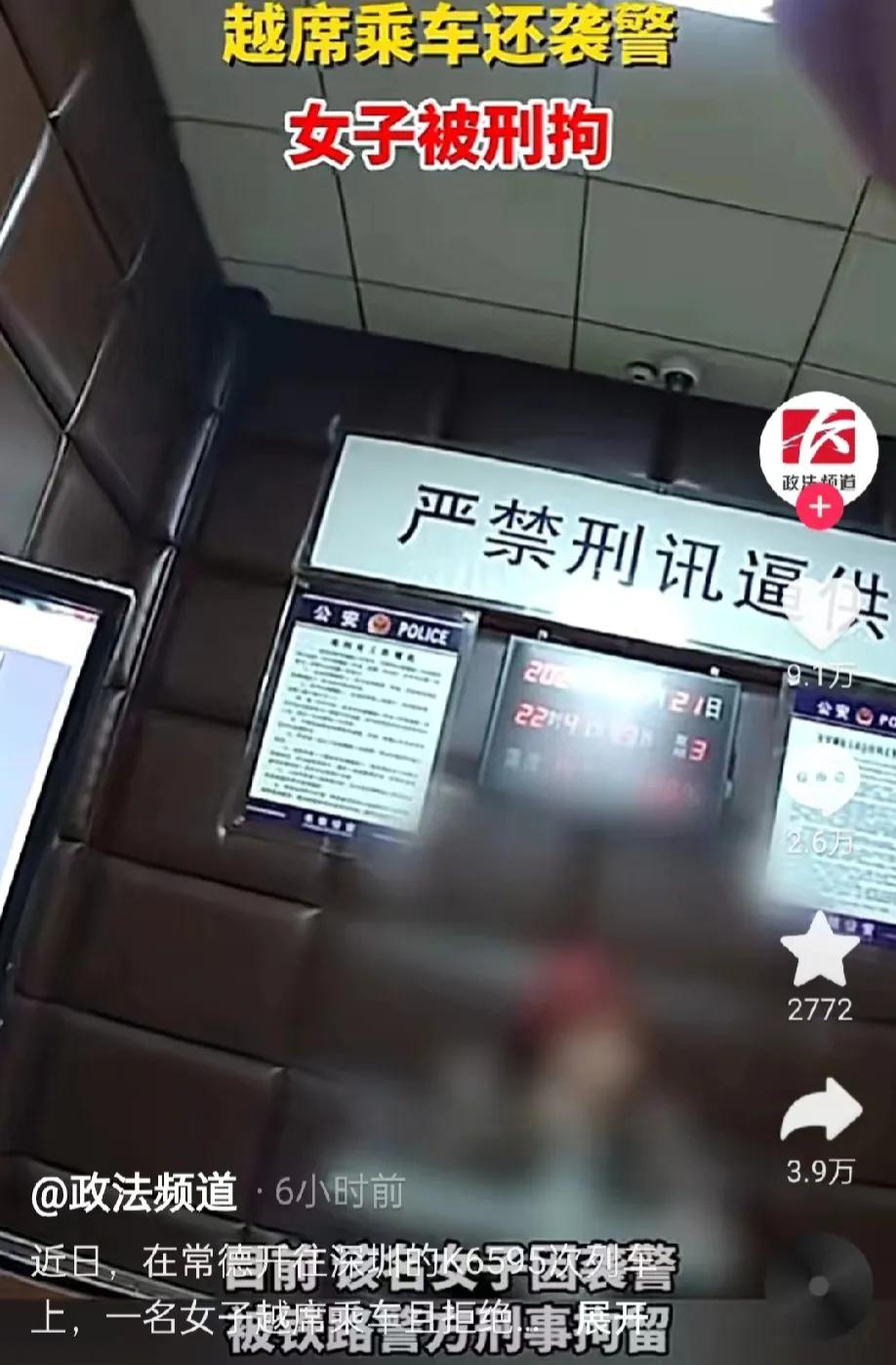 这名女乘客因为袭警罪被刑事拘留,等待她的将是法律的严惩。