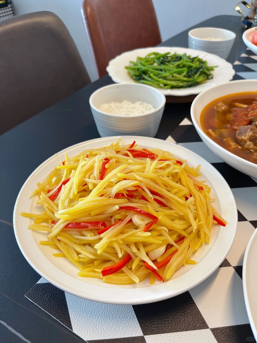 饭菜也都光盘了~醋溜土豆丝我儿子点的,他喜欢拌米饭吃,加了一个红彩椒不辣哦~