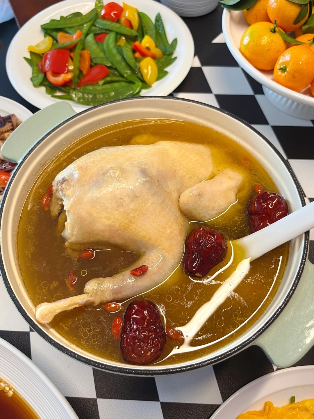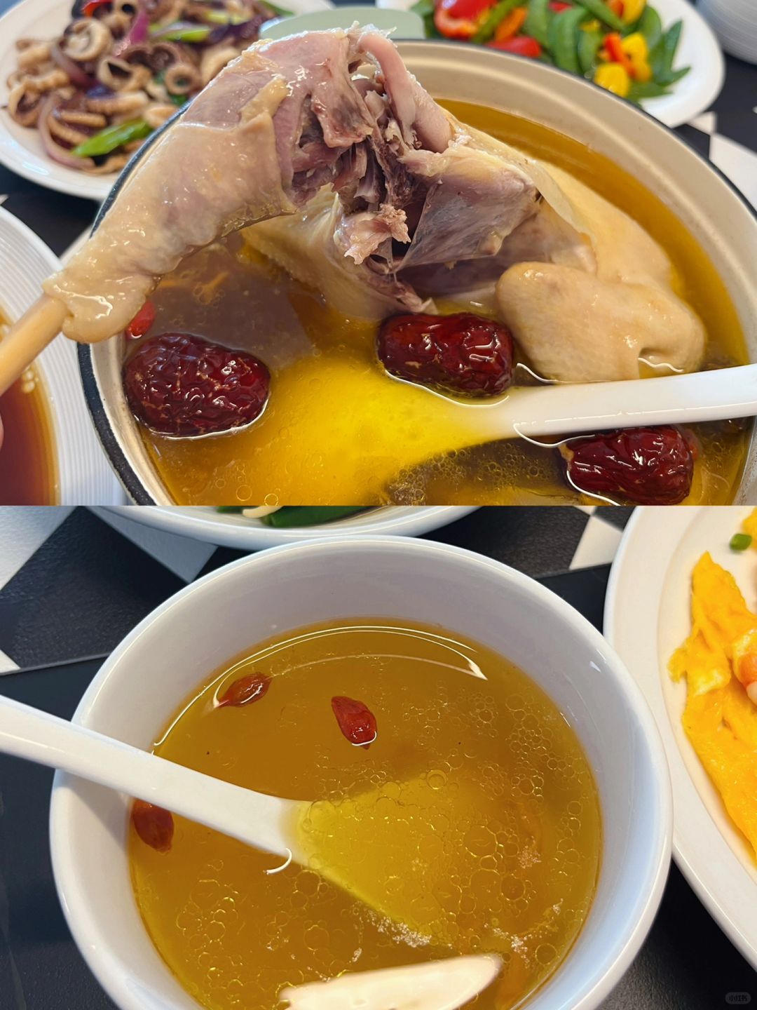 老母鸡汤受到了一致好评,一碗下肚全身都暖和起来了~杨博士的老母鸡是我经常回购的,快成为他家铁粉了,真正好的老母鸡是不用焯水哒,炖的时候少放些葱姜片去腥,出锅加适量盐调味即可,话说,炖出来的鸡汤 汤鲜油亮真的太鲜美了(不喜欢太油的也可以用勺子撇去多余油脂再喝)~满屋子都是这个香味。扯下来一个鸡腿,肉质紧实,唇齿留香是地道皖南土鸡没错了~