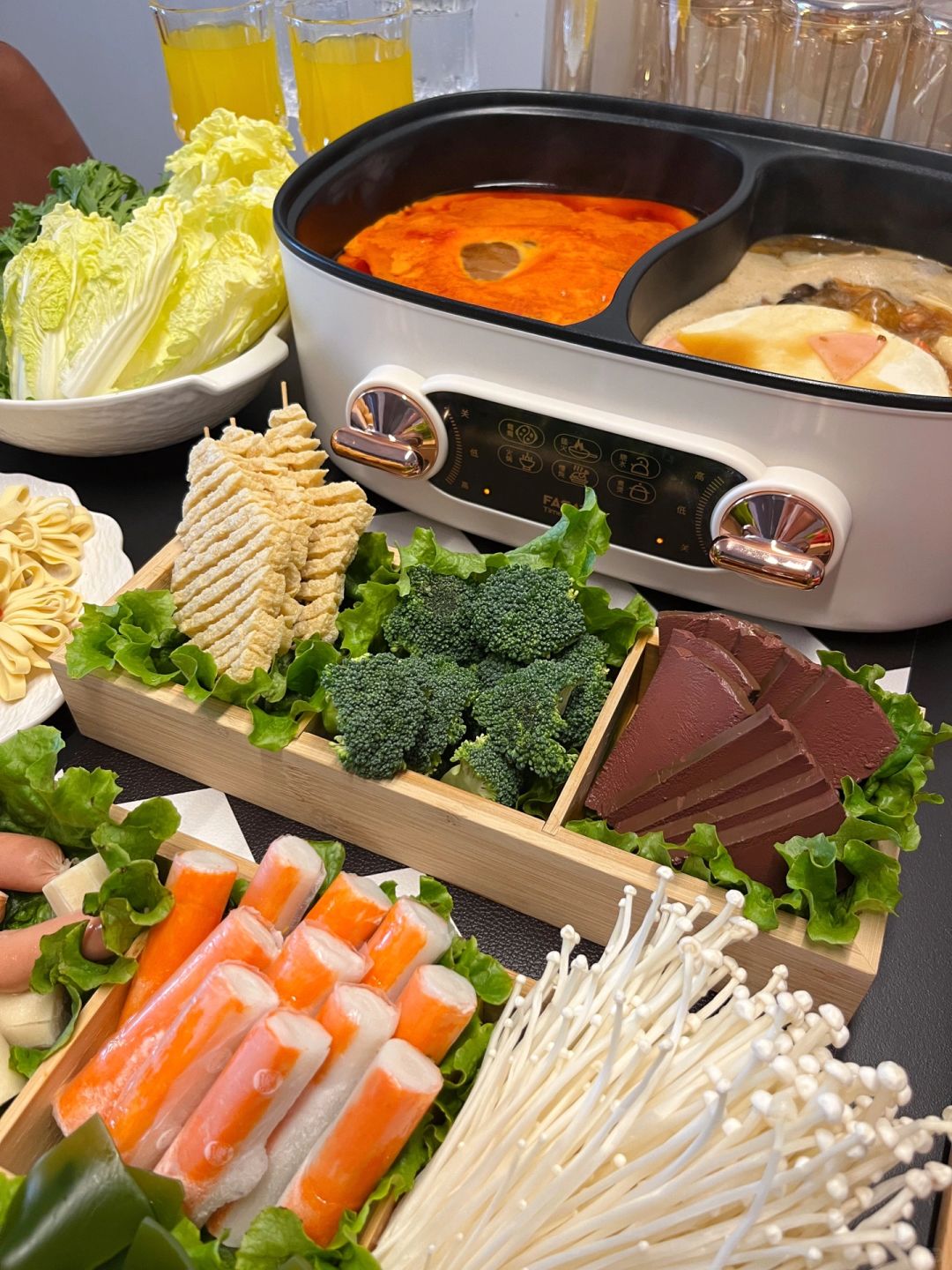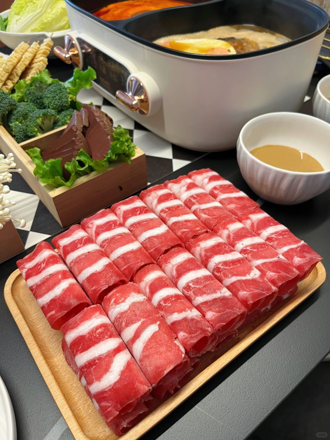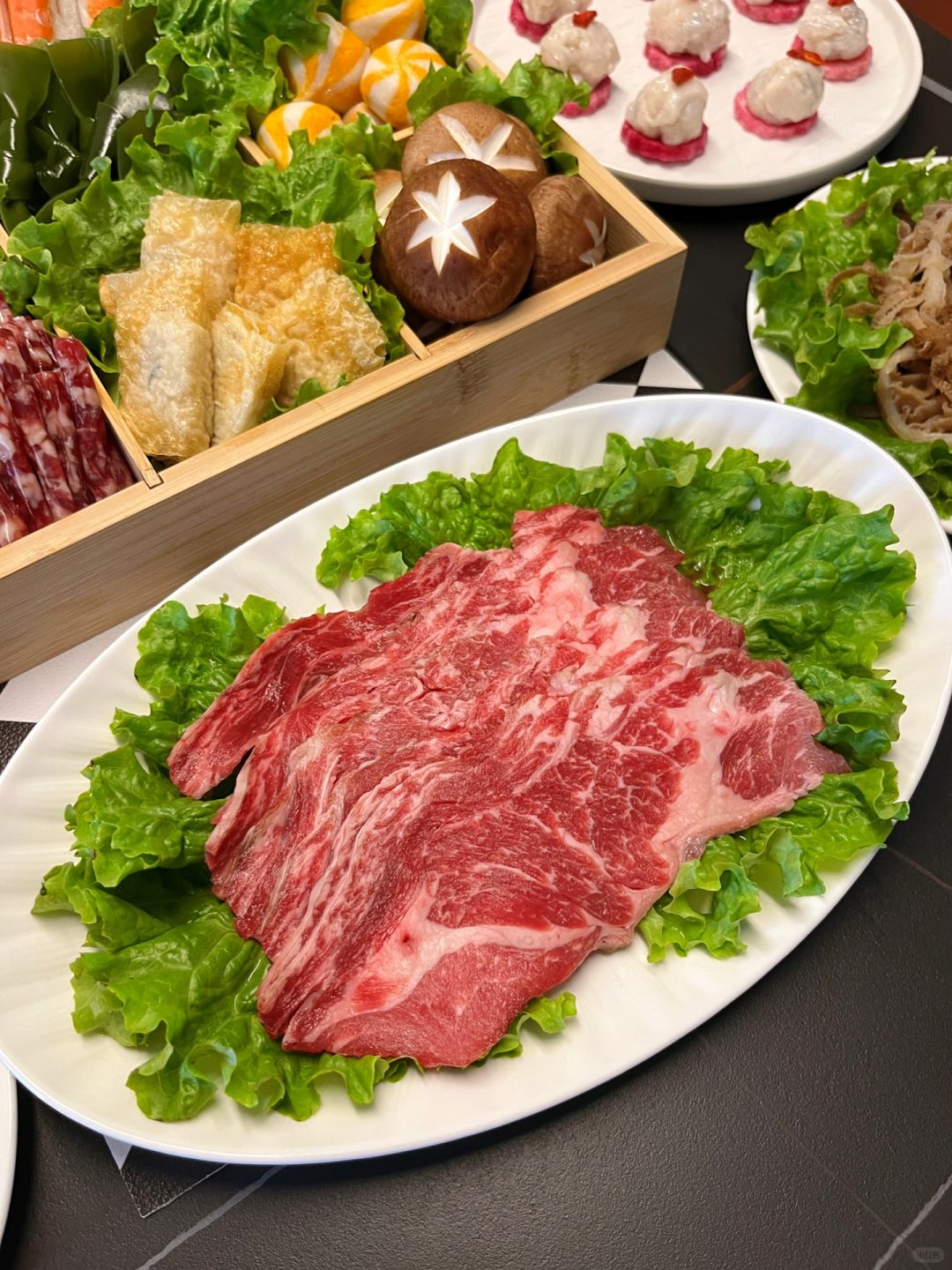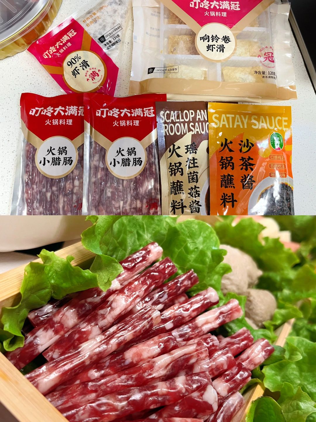 🥩荤菜:牛肉片 | 牛肉卷 | 肚丝 | 虾滑丸子 | 火锅小腊肠 | 响铃卷虾滑 | 鱼籽包 | 鱼丸 | 撒尿牛丸 | 亲亲肠 | 桂花肠肠 | 蟹棒 | 鸭血