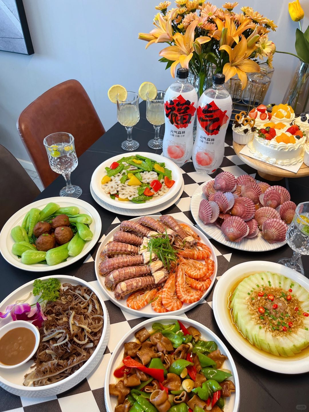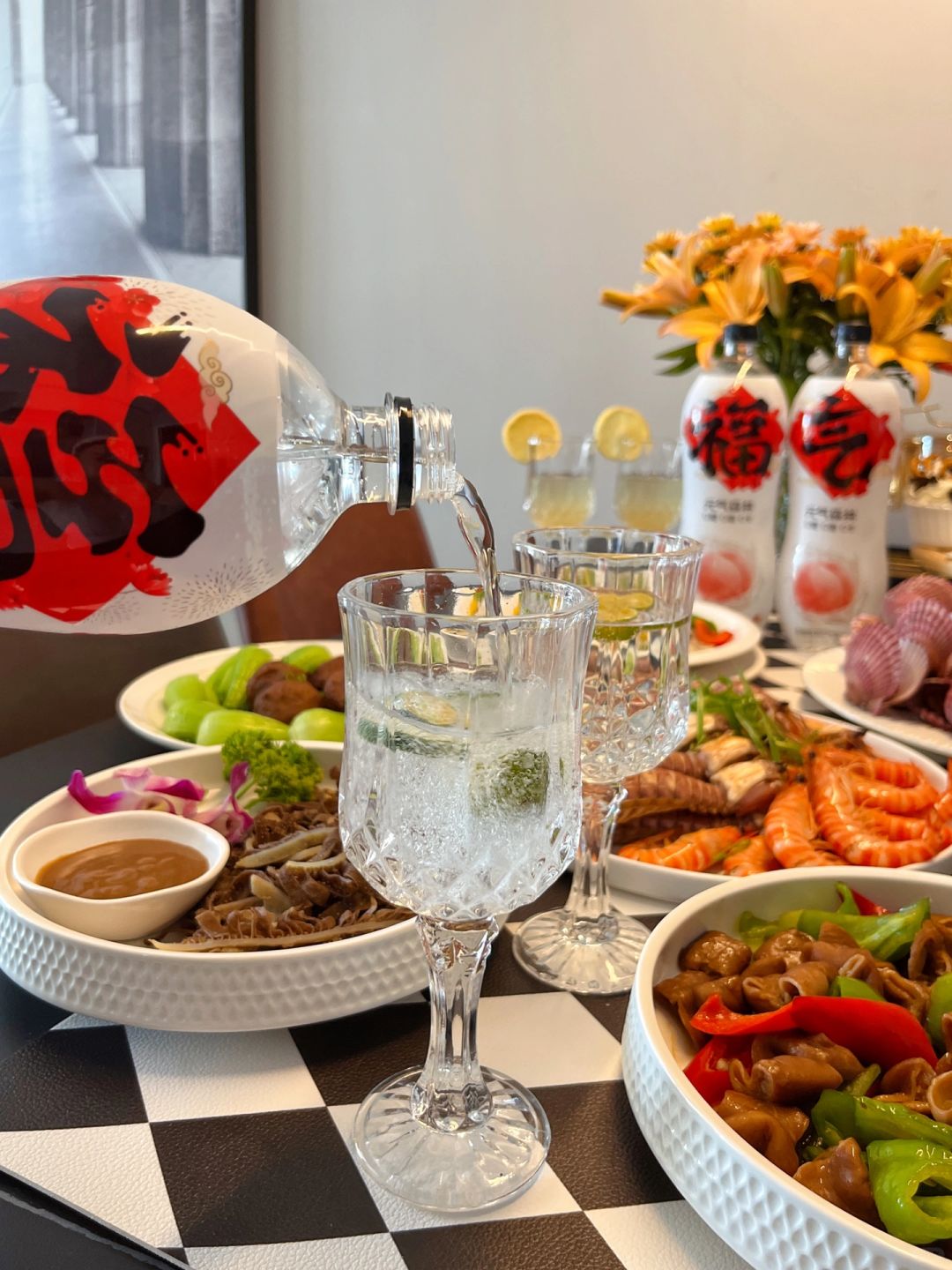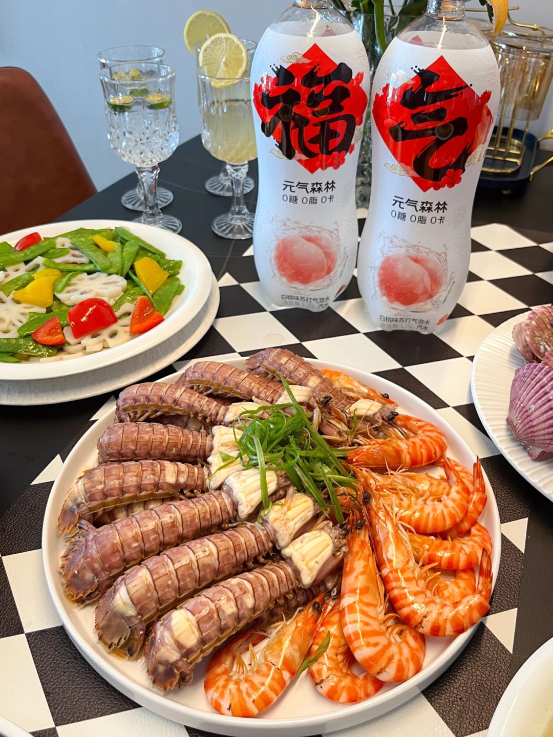 [拔草R]特意买了家宴必备的元气森林福气瓶 来配今天这一大桌子的美味~福气包装氛围感满满,1.25L的容量也很适合中秋节人多聚餐的时候享用,健康有福气中秋喝元气~