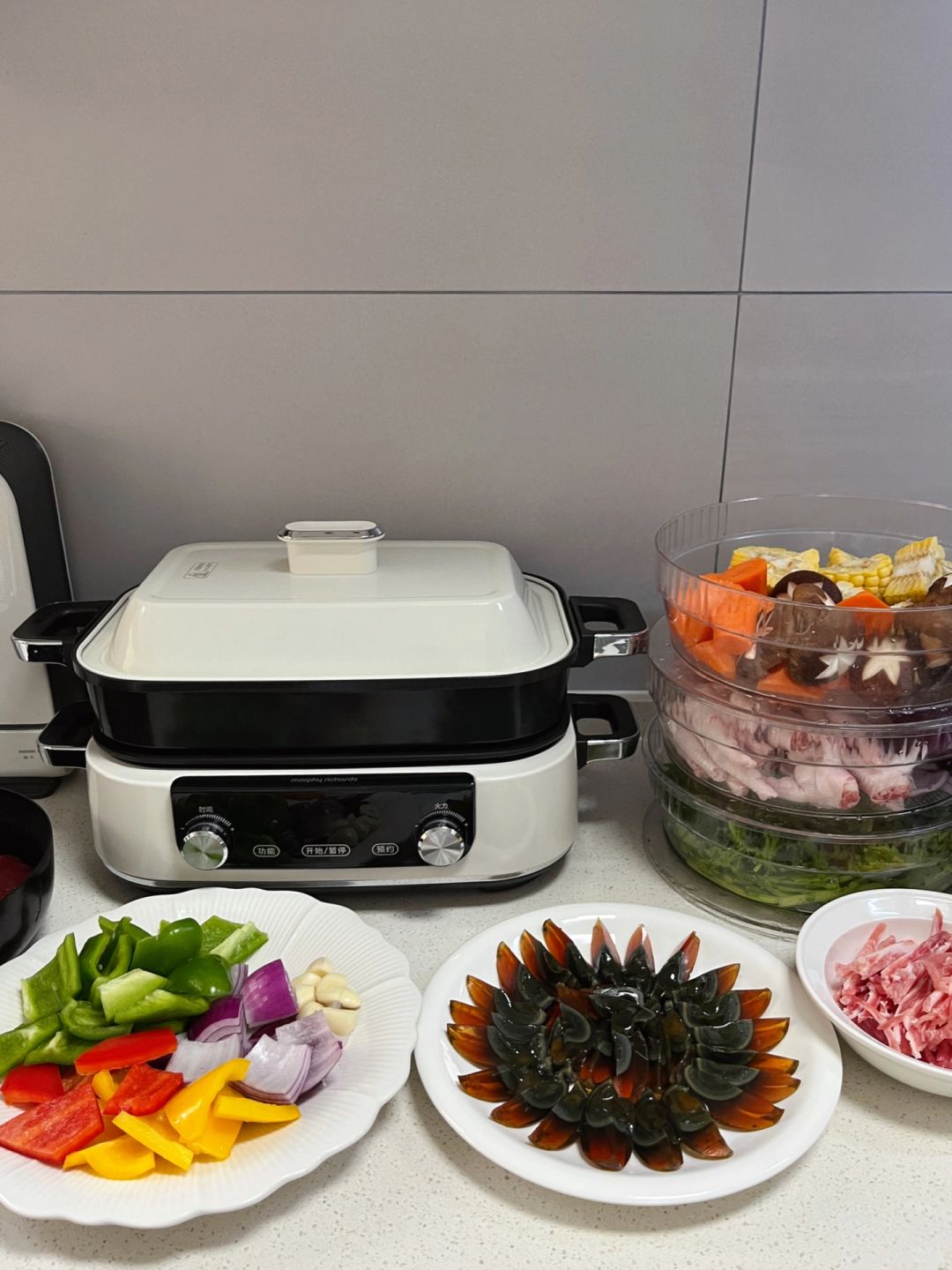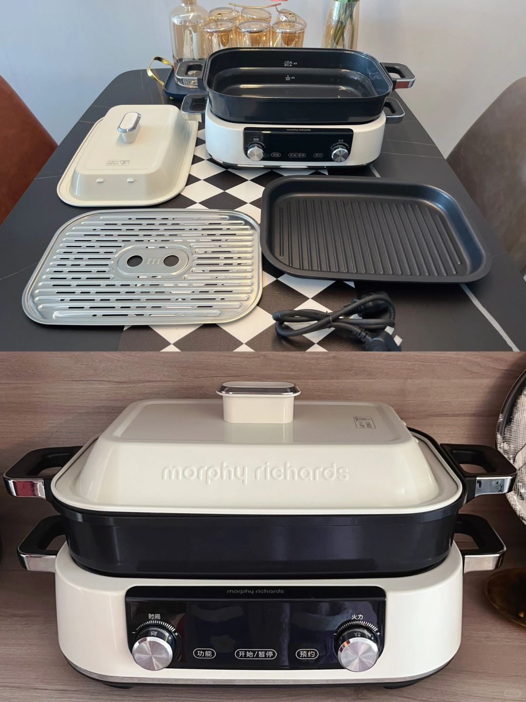锅子还有多种烹饪模式,煎烤煮蒸炖也能满足我家的日常需求,今天除了鸡爪煲,还做了孩子爱吃的香煎牛仔骨,1600w的火力导热快受热也均匀,平时我家来多人聚餐 吃烤肉或涮锅也很合适~收纳起来也方便,所有配件叠起来放柜子或台面都ok~