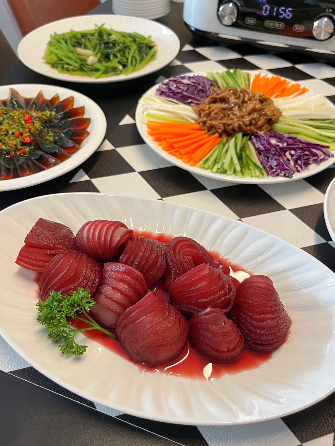 一碗酱汁:生抽3勺➕老抽1勺➕蚝油1勺➕糖1勺