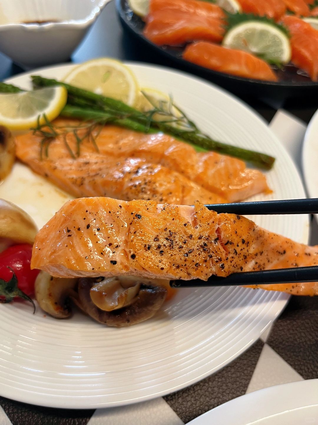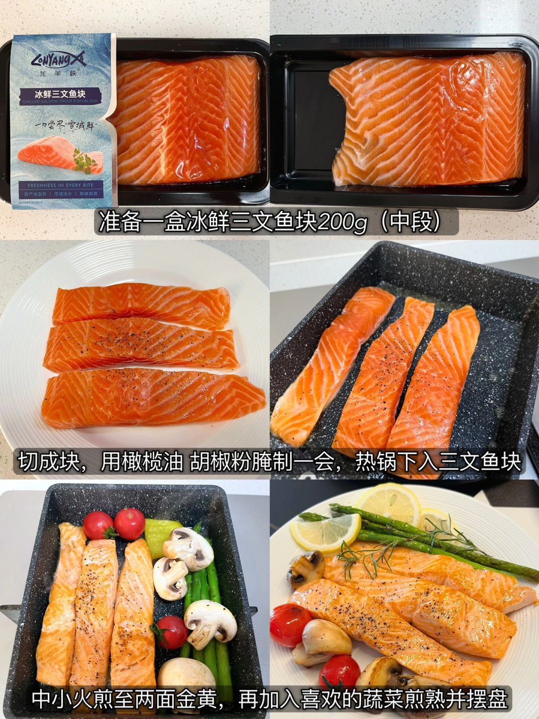 另外还有三文鱼块拿来香煎给孩子吃,做法一样简单 几分钟搞定,香嫩可口我儿子直呼美味~就像刚捕捞上来的一样新鲜!