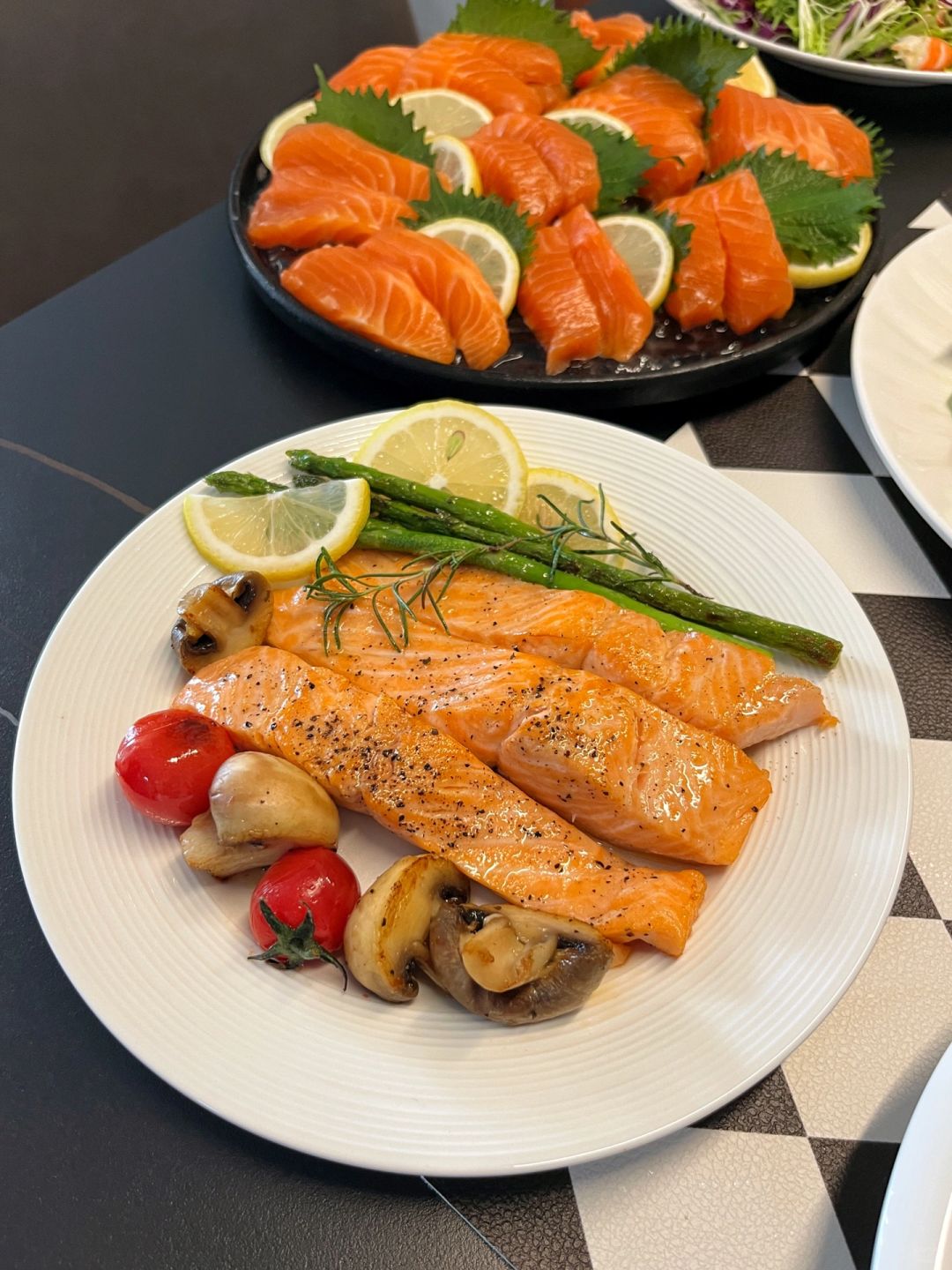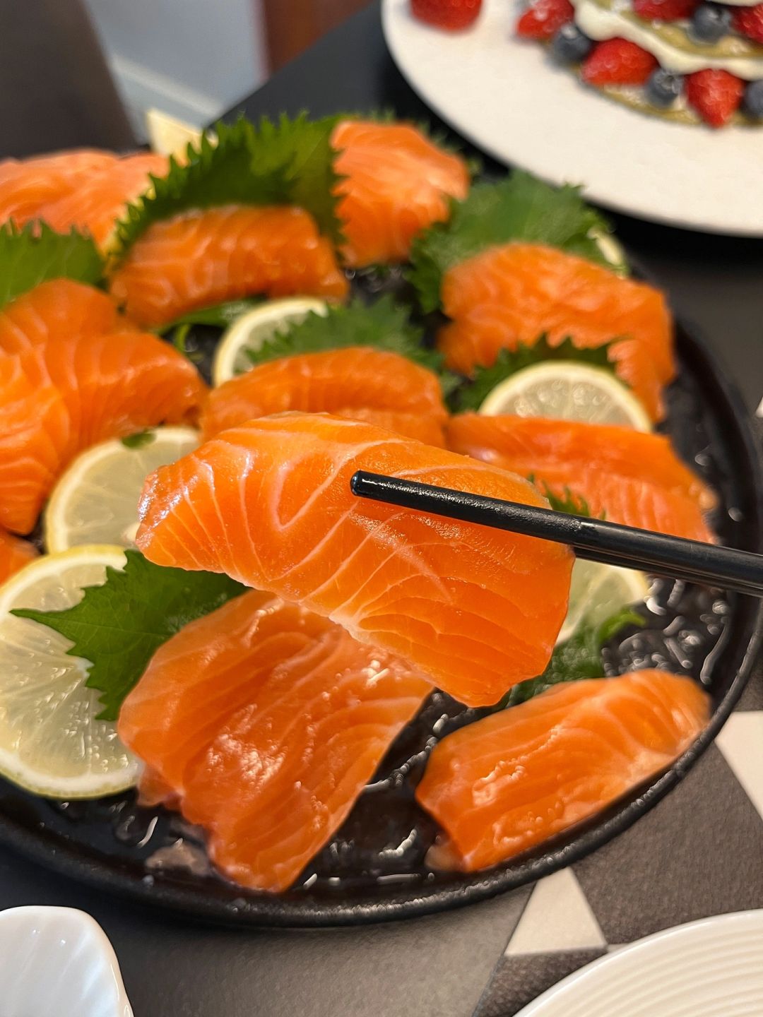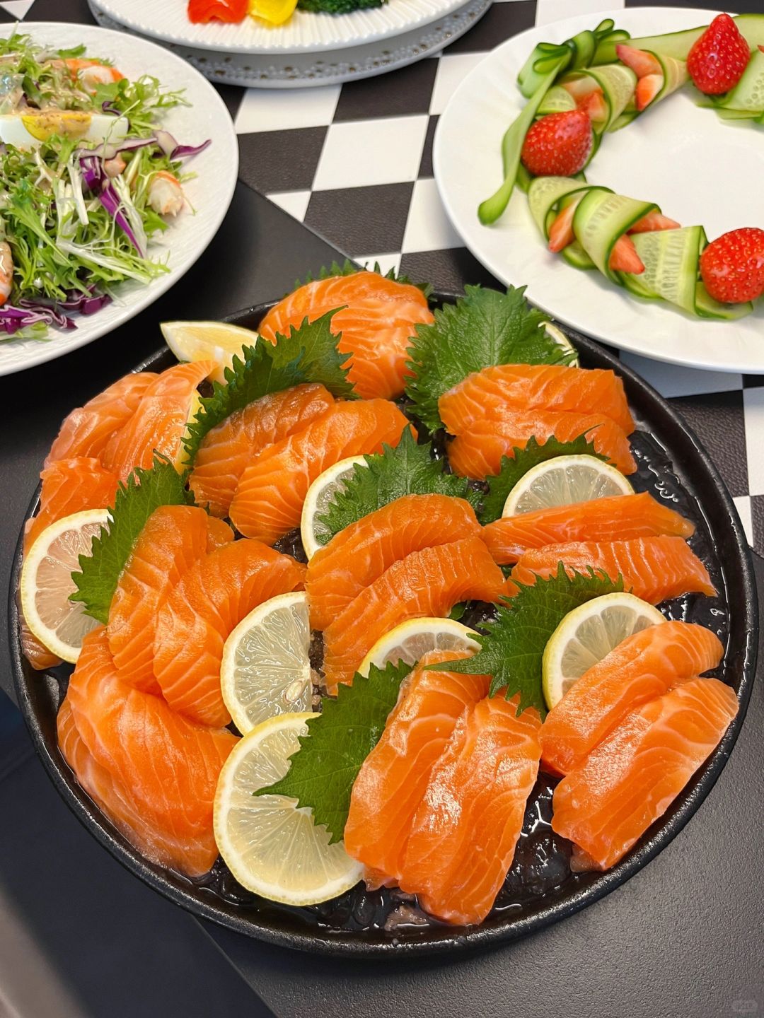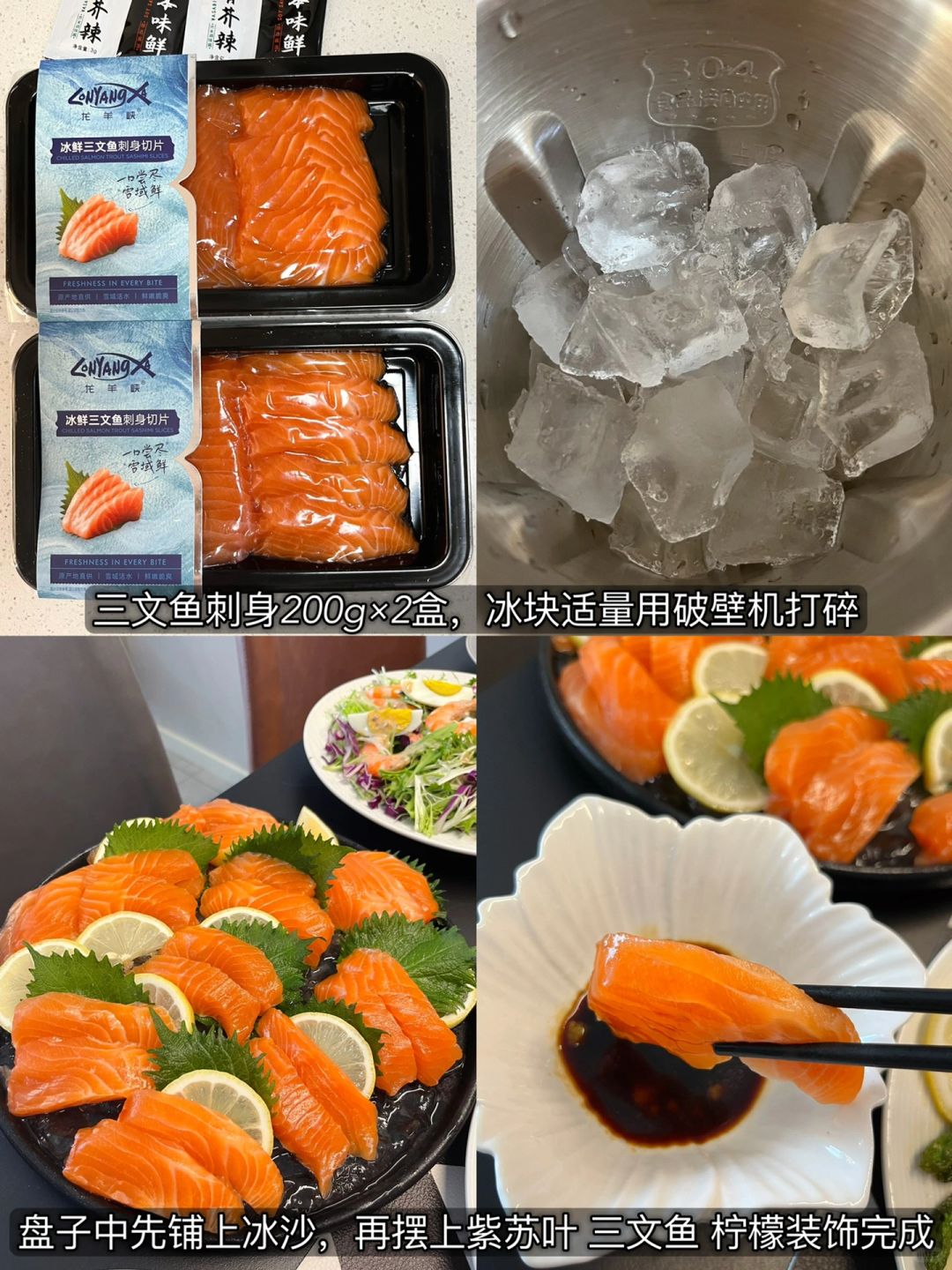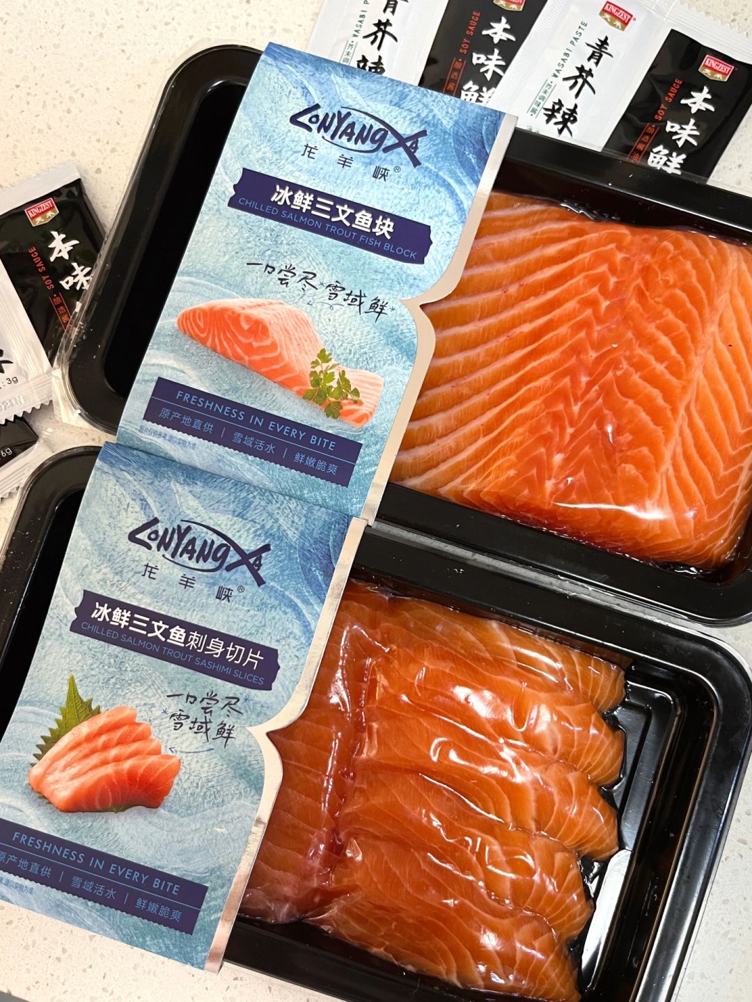 圣诞餐就是要有不一样的仪式感,除了应景的圣诞烤鸡、圣诞蛋糕、水果花环以外,今天的三文鱼刺身惊艳全家,话说咱们国产的三文鱼也一样的高品质呢,这个龙羊峡刺身切片我家已经吃过好几次了,是青海高原冷水养殖的,新鲜软糯,入口即化,买回来只需要简单的摆盘就Ok,今天是厚切的两盒整整摆了一大盘,真正实现了三文鱼自由~