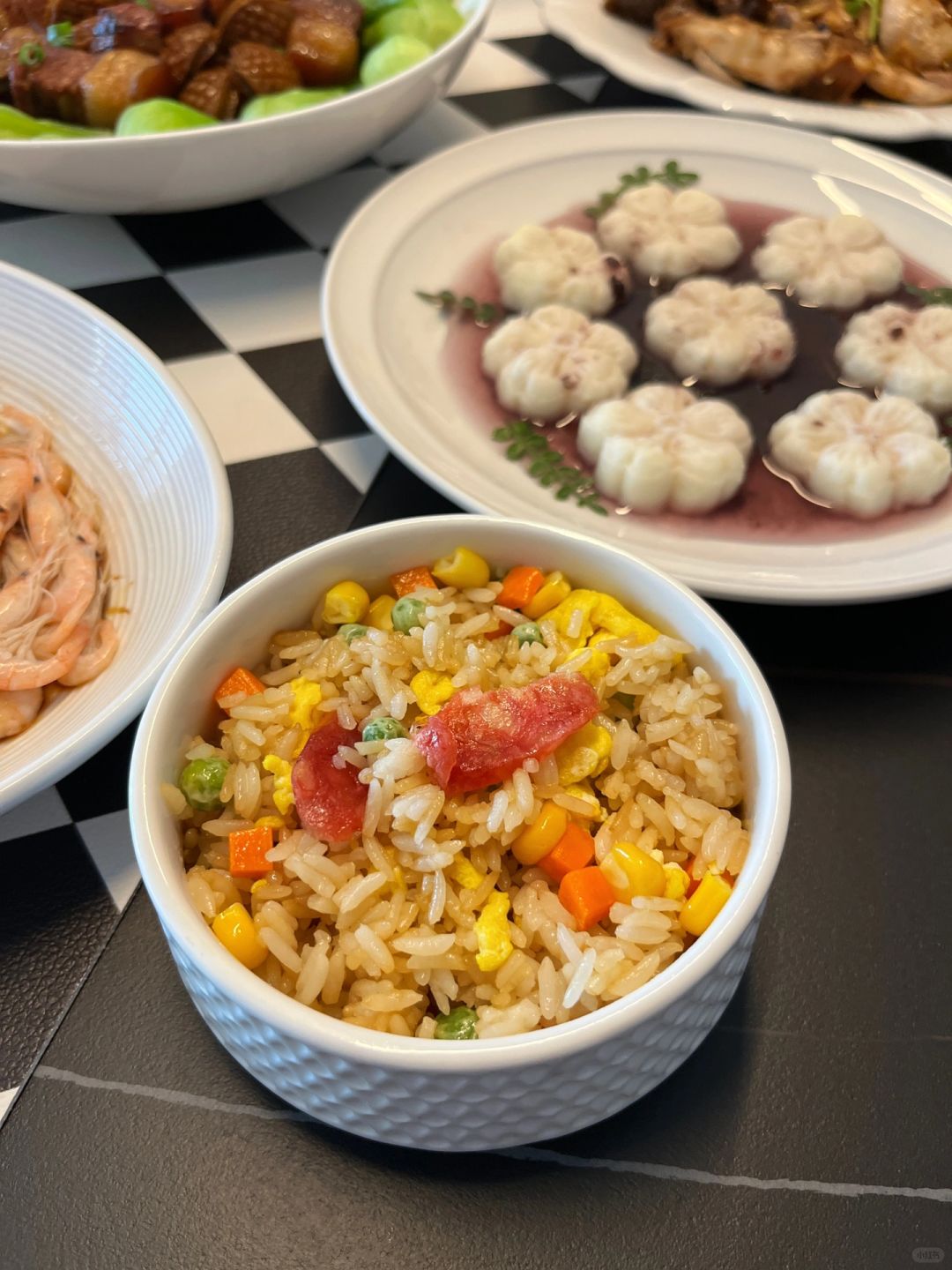 1️⃣食材:大米饭,鸡蛋,腊肠,熟玉米粒,熟青豆,胡萝卜丁