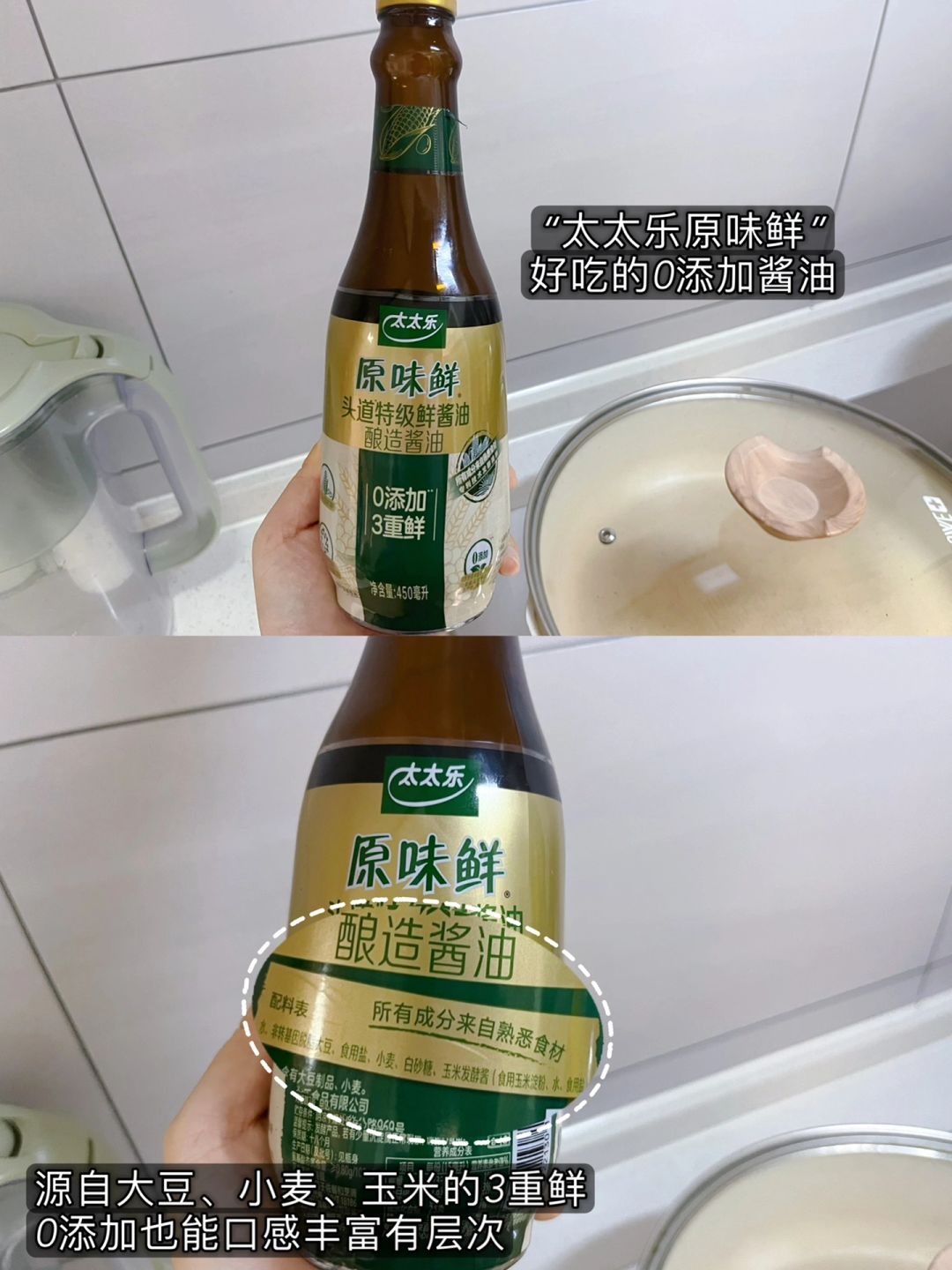 [种草R]秘诀当然离不开好吃的0添加酱油太太乐原味鲜,源自大豆,小麦,玉米的3鲜,即使0添加也能做到口感丰富有层次,给孩子做饭用它调味我也放心,做出来的味道丰富孩子吃的也开心,日常炖肉,炒菜,凉拌菜,或者做蘸料也比较合适~