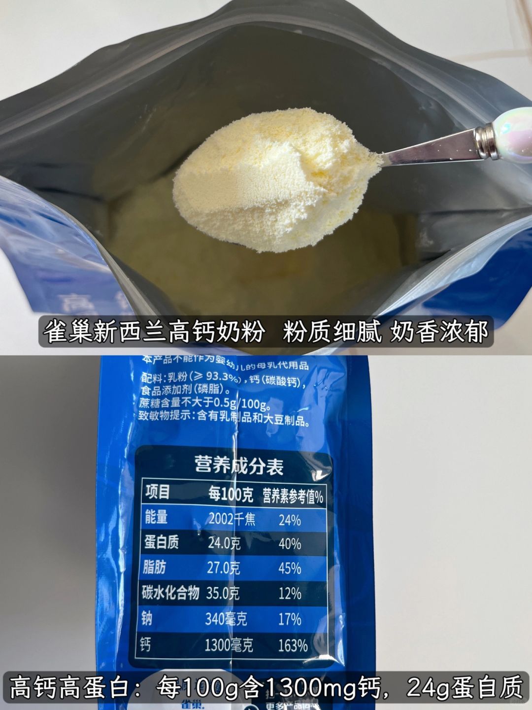 为啥选这款,我也是做了很多功课的。 首先对比国产奶源它更优秀,是黄金奶源地新西兰的进口奶源,100%来自生牛乳,在新西兰大草原上放养的奶牛,吃着纯正草饲,呼吸着无污染的空气,产出来的牛奶也超优质,正因为如此优质的牛奶才保证了奶粉的品质~营养也很高,【钙量卷王】的称号可不是白来的,100g里钙含量高达1300mg还有24g的优质蛋白,每天早晚各一杯就能基本补足一天所需的钙了,暖身子同时还能补充这么高的钙量 也太棒了!
