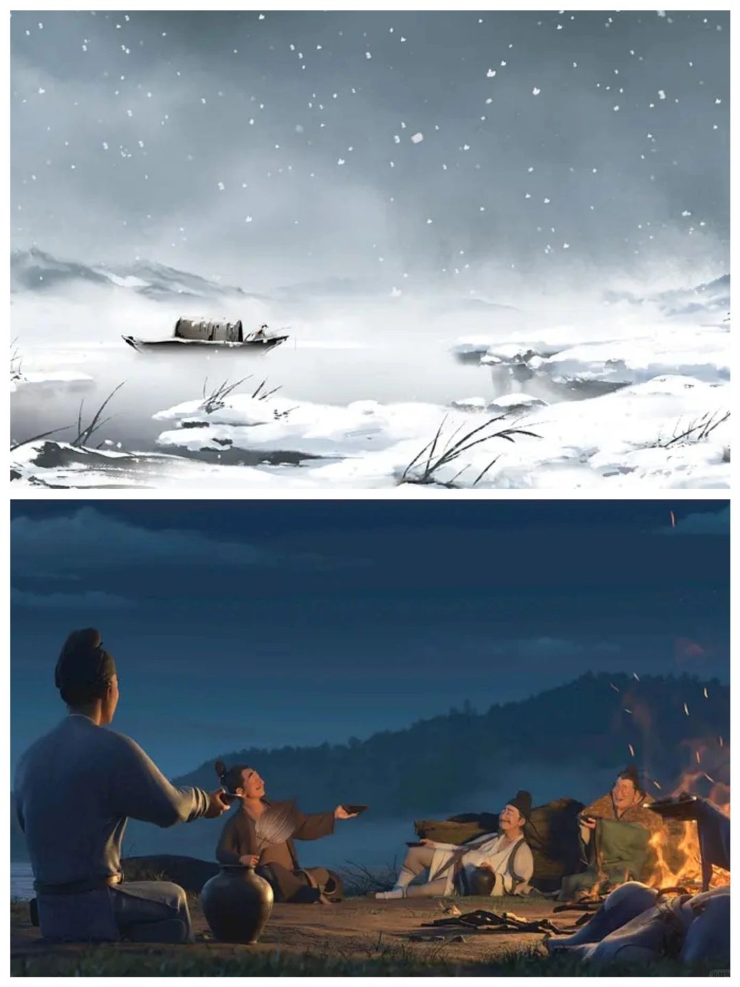 特别是看到李白袒露上身与高适摔跤的前后对比,那喝酒习成的大肚腩哦。