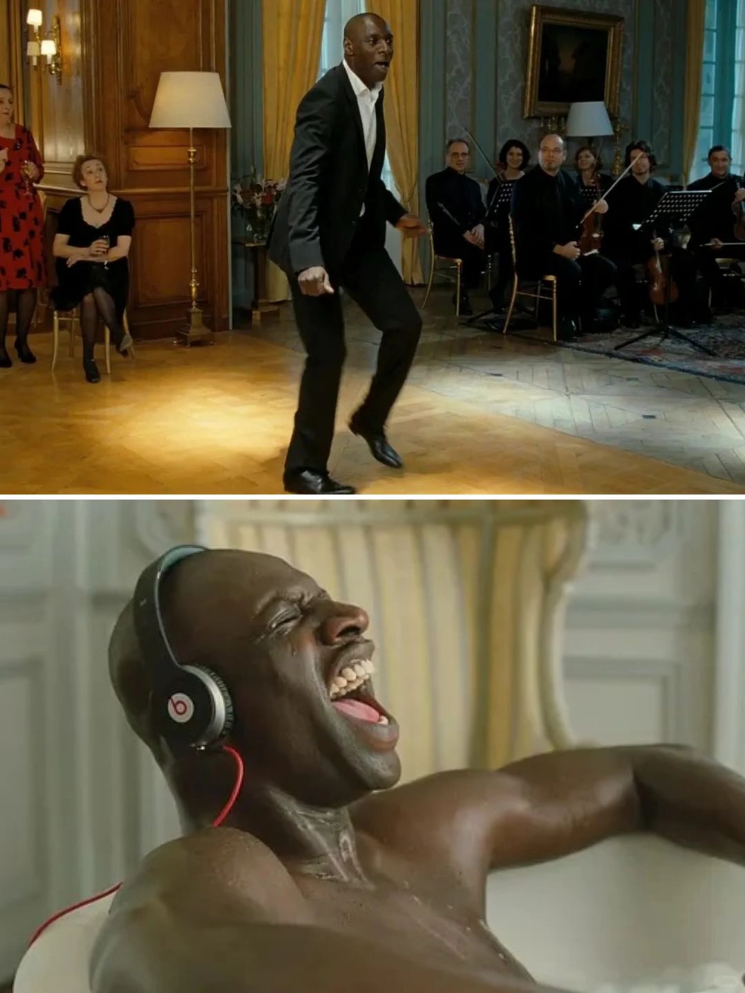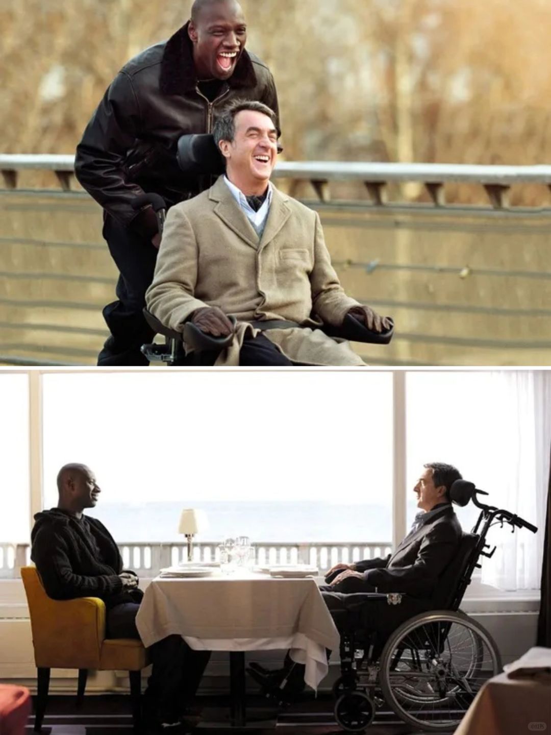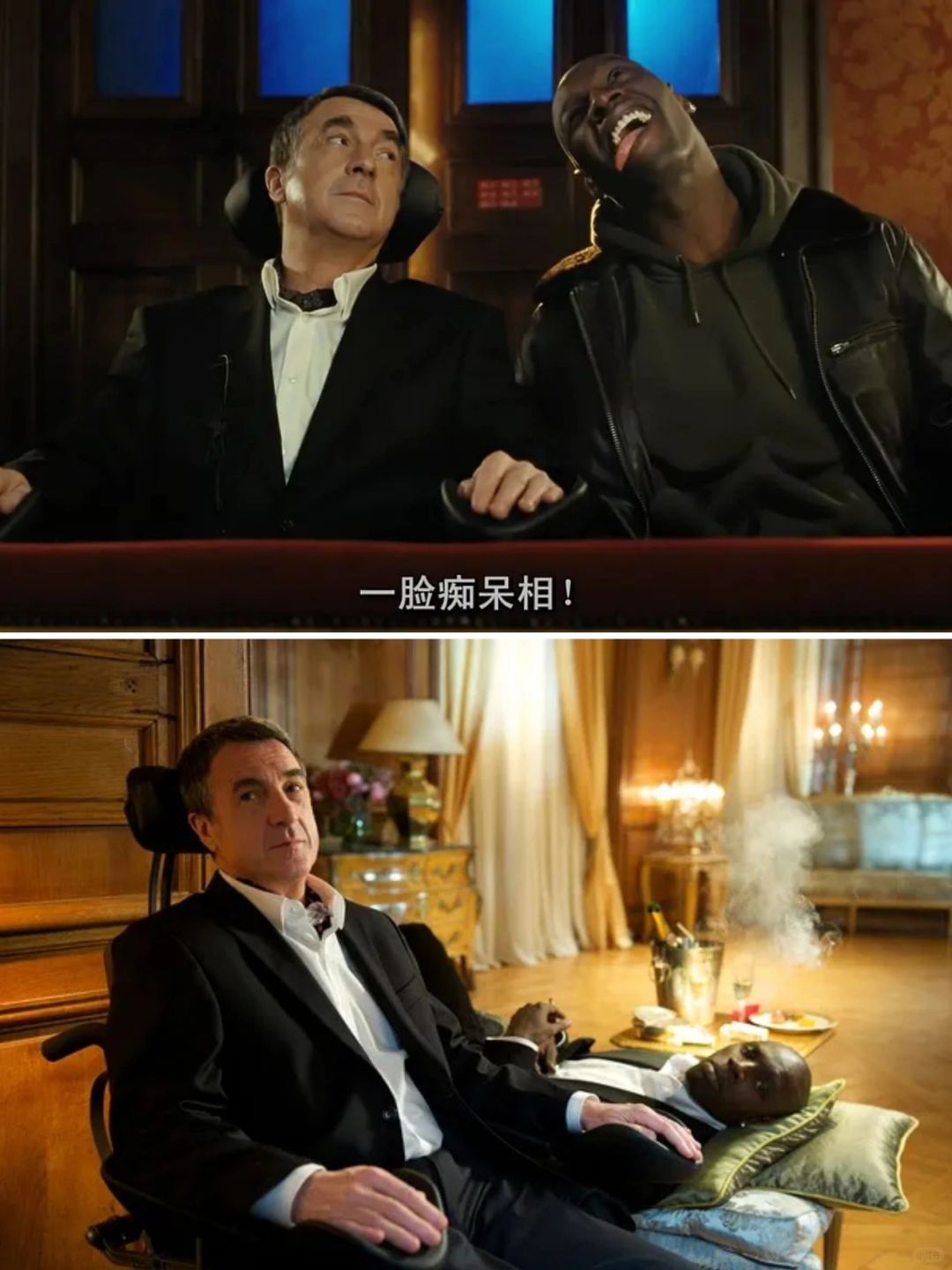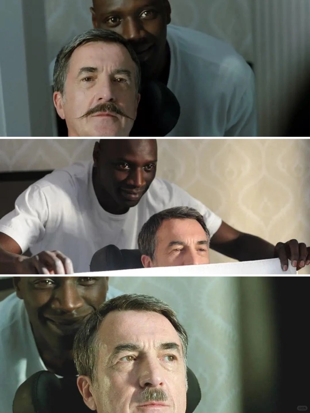 电影改编自一个真实事件,讲述了一个闷骚瘫痪的白人富翁与一个开朗健康的D丝黑人相互帮扶,慢慢成为挚友的故事。