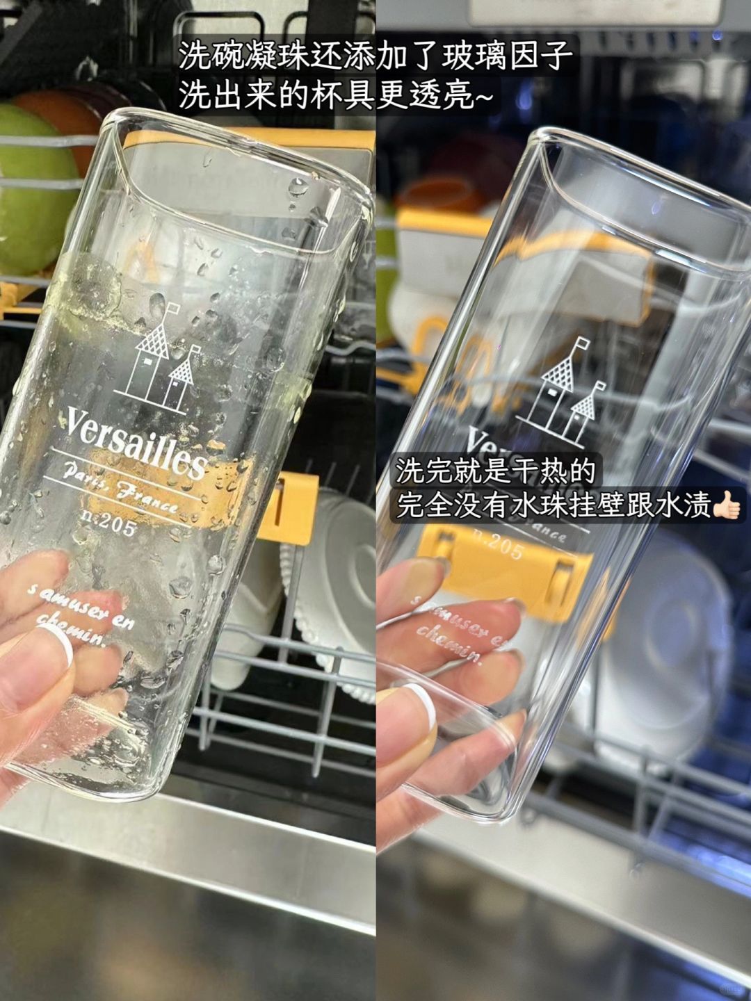 人间烟火气最抚凡人心~厨房是充满烟火气的地方,为家人下厨对我来说也是件幸福的事情,所以平时很多时间都是待在厨房里准备一日三餐或是做清洁归类整理。说到这里就不得不夸一下厨房里zui能给我带来幸福感的电器洗碗机以及它的好“搭档”亮碟啦,日常餐具洗涤我都交给它,对于每天工作量很大的洗碗机来说,定期做清洁也是很重要的事情,毕竟每天洗碗洗盘 机体内多少也会残留各种陈年沉积,我的办法就是每个月用亮碟小方瓶清洁一次,使用的时候也方便,清空洗碗机的碗碟后,直接撕掉瓶口贴纸倒扣在碗架上,选择65以上模式就可以,它的双层配方能有效去除机体内的油污,透明层还可以瓦解水垢,洗完的洗碗机内壁、滤网、下水口油污等每个角落都是干干净净的,很安心~另外日常洗碗的清洁剂我家也是用的亮碟洗碗凝珠,饭后洗碗的时候放进洗碗机一颗轻松搞定,能快速溶解油污,有效的除菌抑菌~可别小看这小小一颗凝珠,常见的油渍、奶渍,甚至杯子里的茶垢都能轻松洗掉了,这个亮碟洗碗凝珠里还有玻璃护理因子,玻璃杯洗出来也是干净透亮,解放双手的同时让我们家的一日三餐吃的更省心。