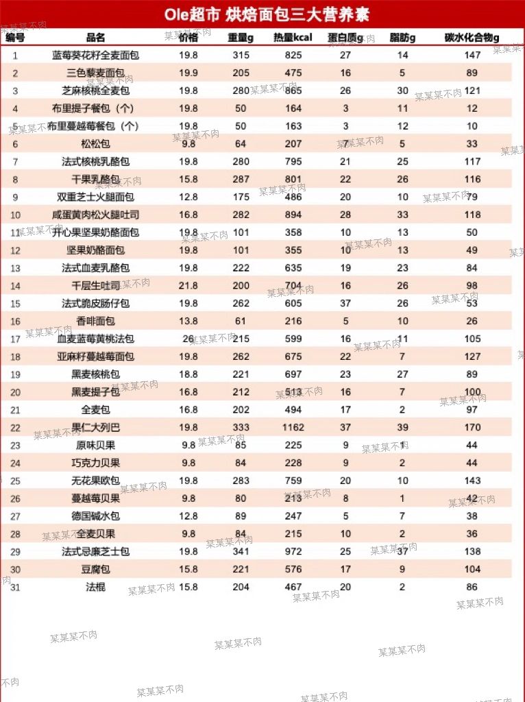 31款全拆解🆘三大营养素‼️Ole面包热量测评