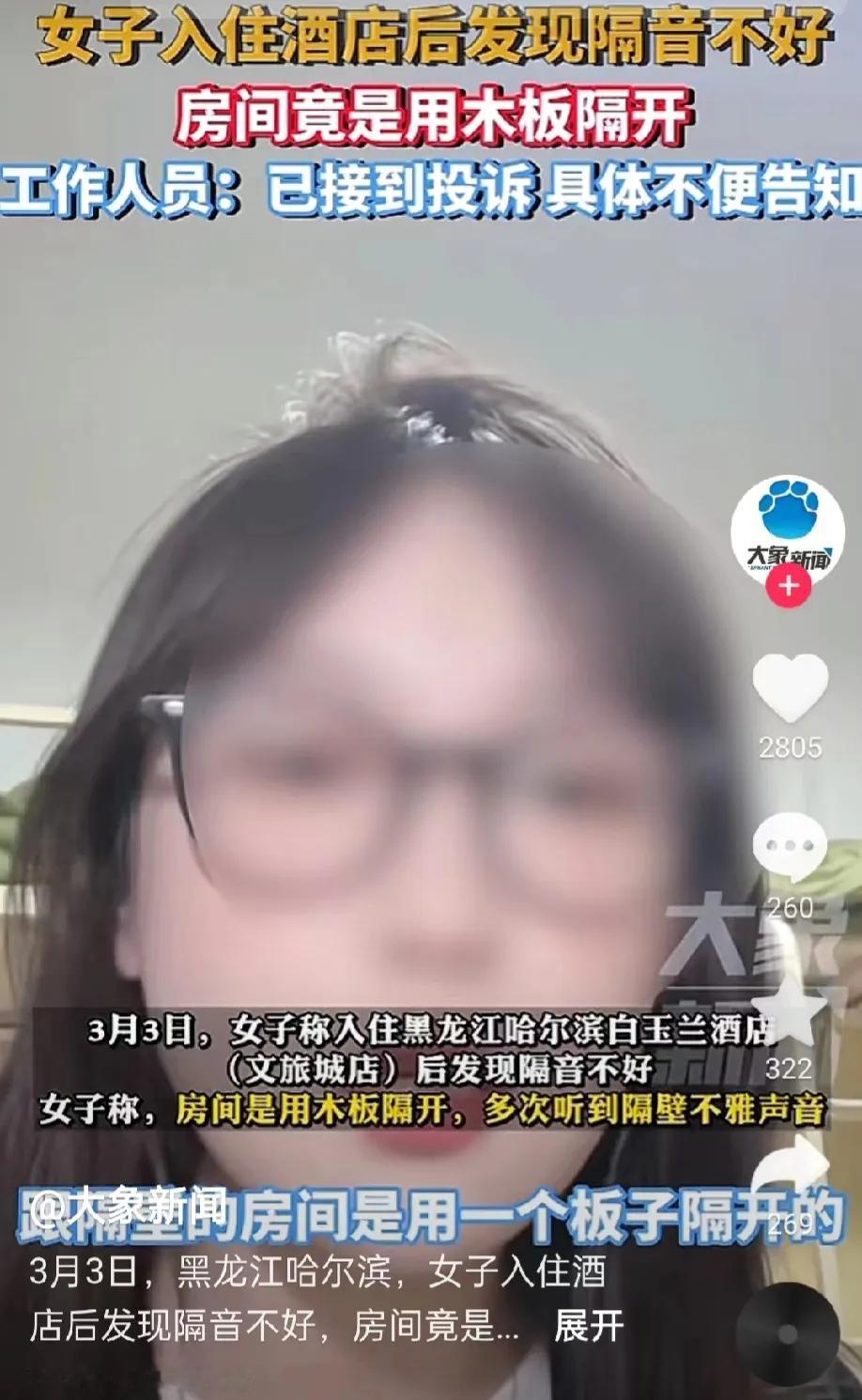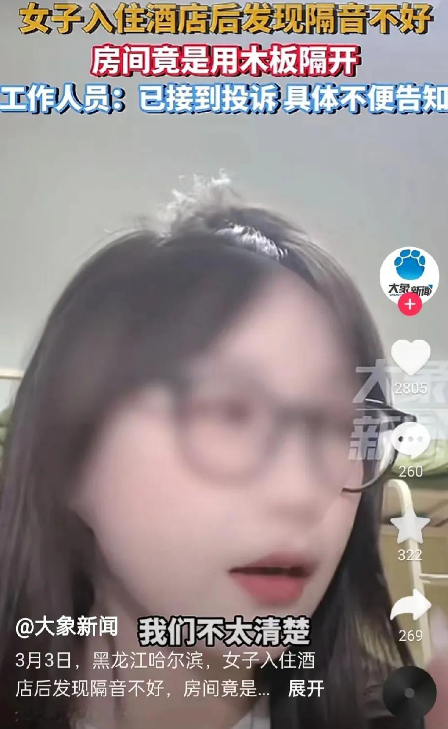 黑龙江哈尔滨,某女子入住酒店,却不料听到了隔壁不雅声音,而且一直持续了几个小时。女子根本没有办法休息。女子认为不是客人的原因,而是酒店的问题,因为房间只是用板子隔开。酒店工作人员回应道,有投诉,但是得等领导处理,其他的一概不清楚不知道。