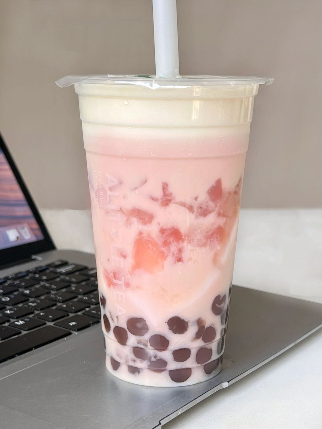 感谢一点点邀请品鉴… 桃喜奶乌 正常冰 去糖➕椰果 波霸 奶霜 换四季春茶底!奶香混合着果香 很清爽!