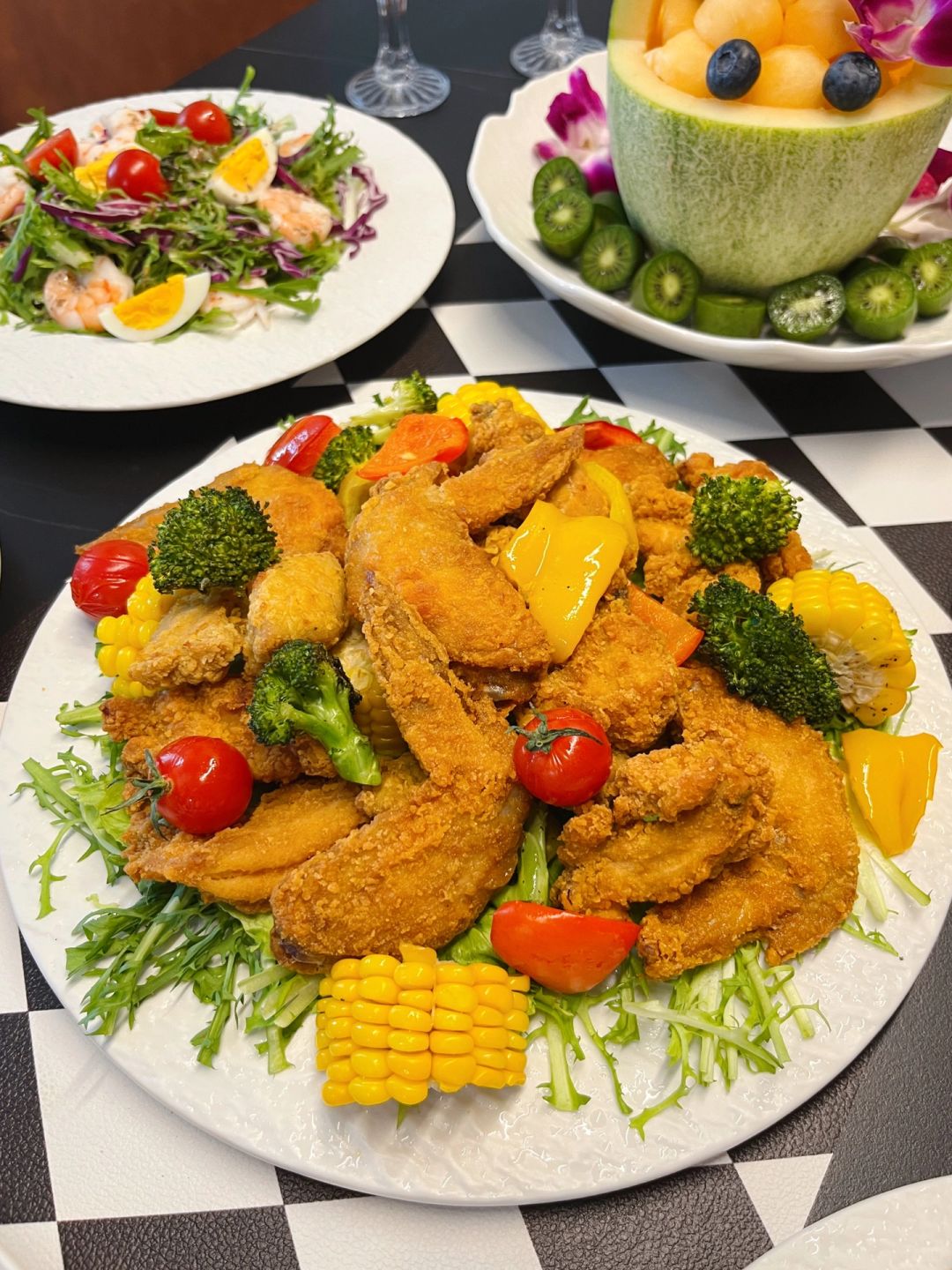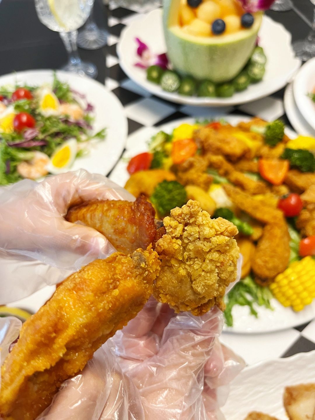 立冬以后天慢慢冷了起来,嘴馋总想吃肉,和闺蜜的下午茶之约立马把快乐炸鸡大拼盘给安排上,正好家里之前囤了许多圣农的各种炸鸡半成品,有个头超大的脆皮炸鸡,还有肉很多的嘟嘟翅,这次还新买了一个黄金脆脆翅,也很对大家的胃口!