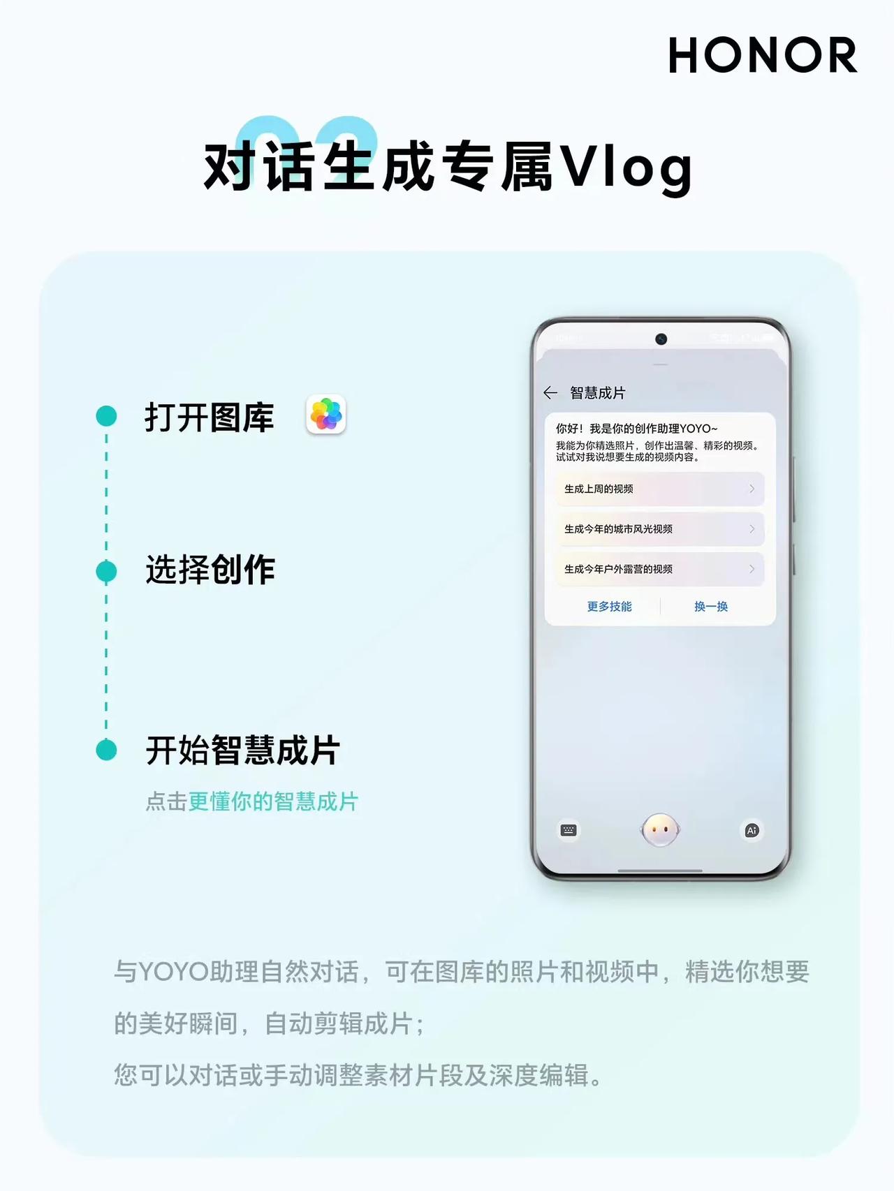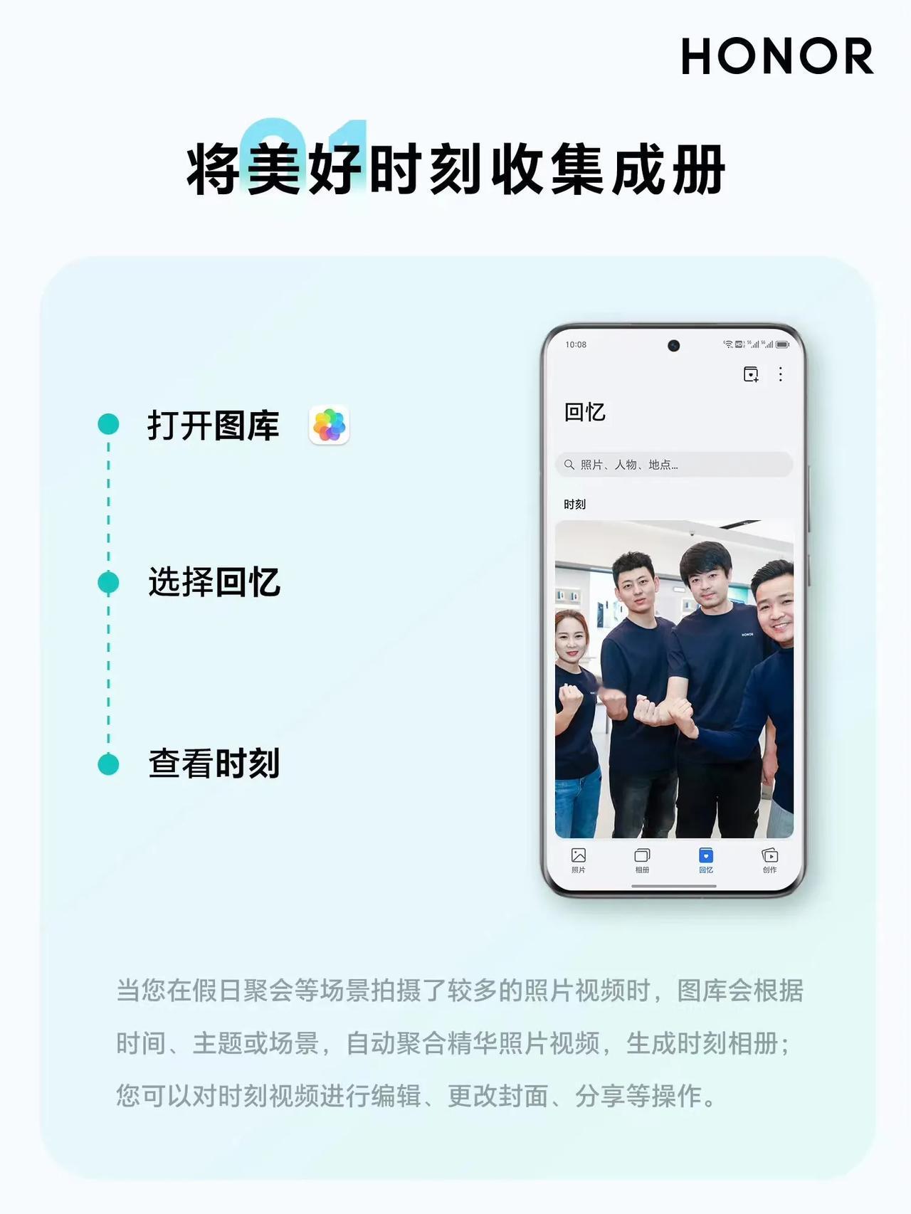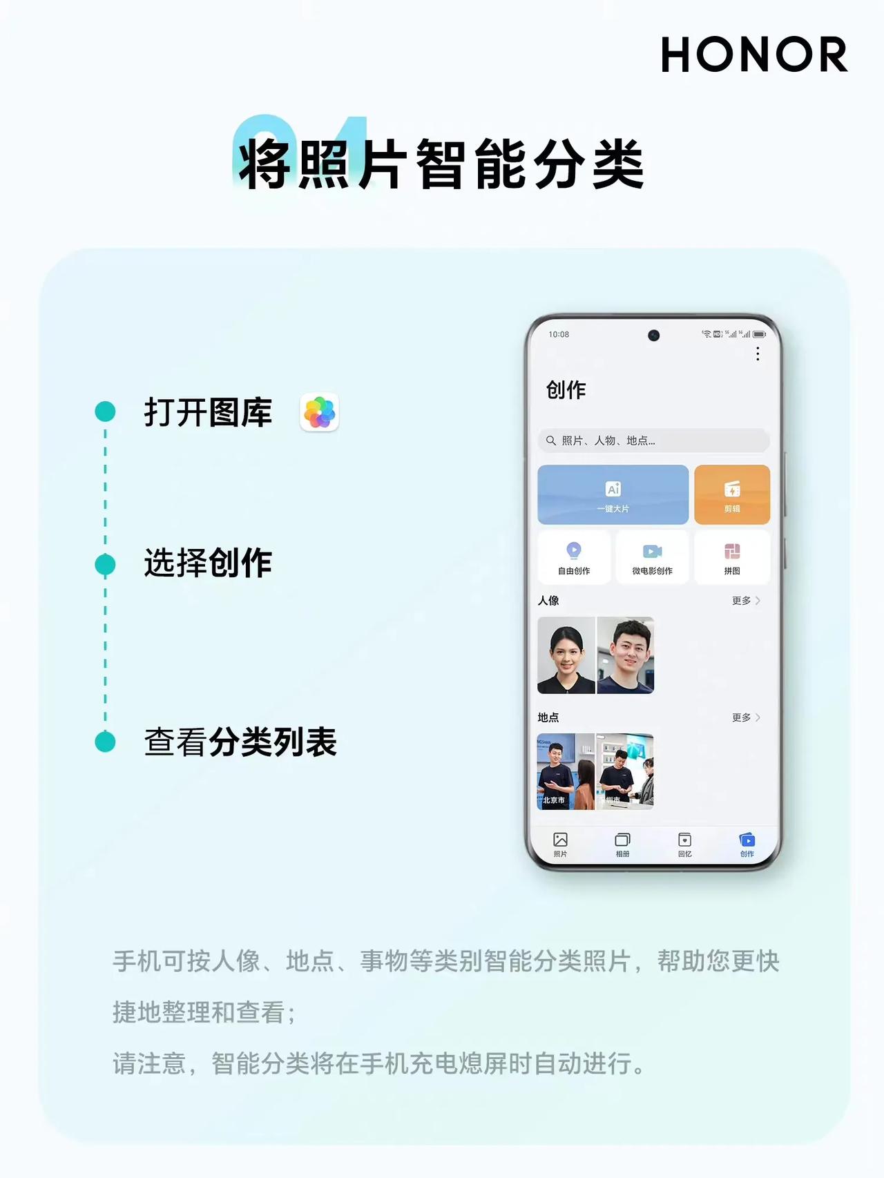 荣耀手机图库功能多,美好瞬间自动成册留回忆。与YOYO对话,轻松生成专属Vlog。地图相册回顾足迹,自动分类让查找更方便。快来发挥创意,打造个性相册,让照片充满故事!这么丰富多彩的功能,大家赶紧造起来吧!