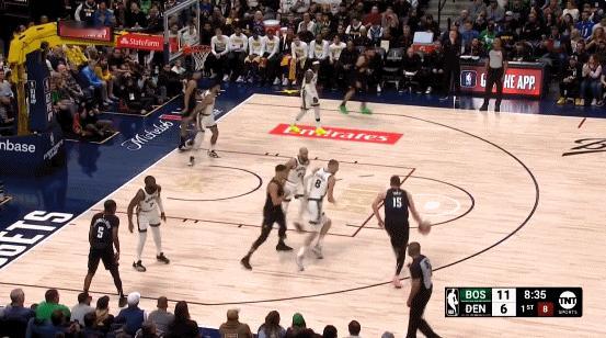 NBA赛场镜头: 约基奇强突内线,撞倒波津,双手扣篮,平时不这么玩儿,不代