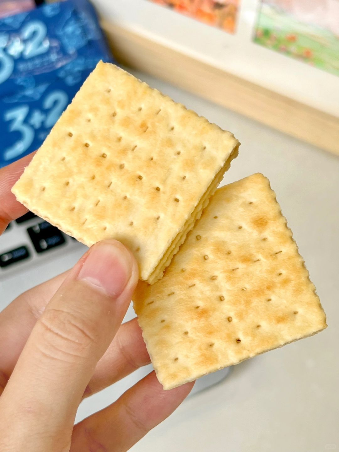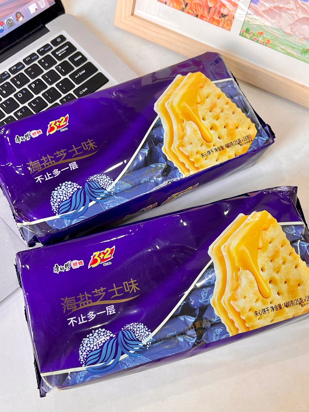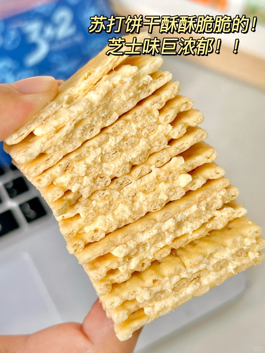 一共有三层苏打饼干 两层海盐芝士夹心 🤤越嚼越香!