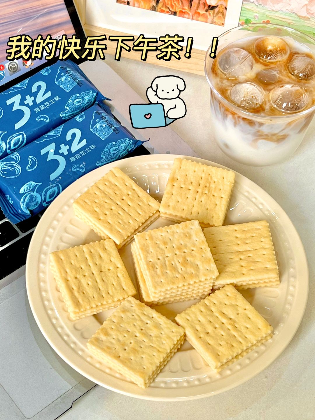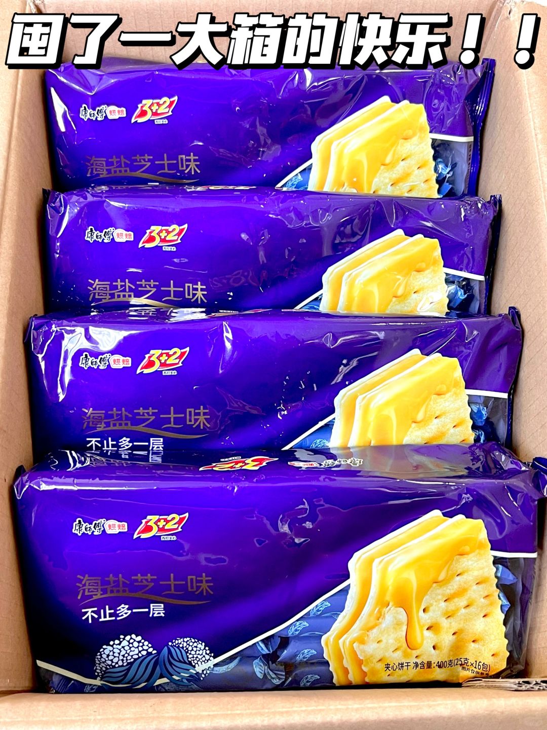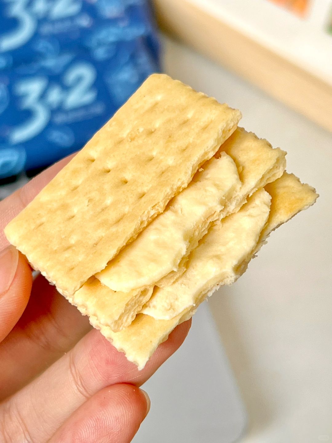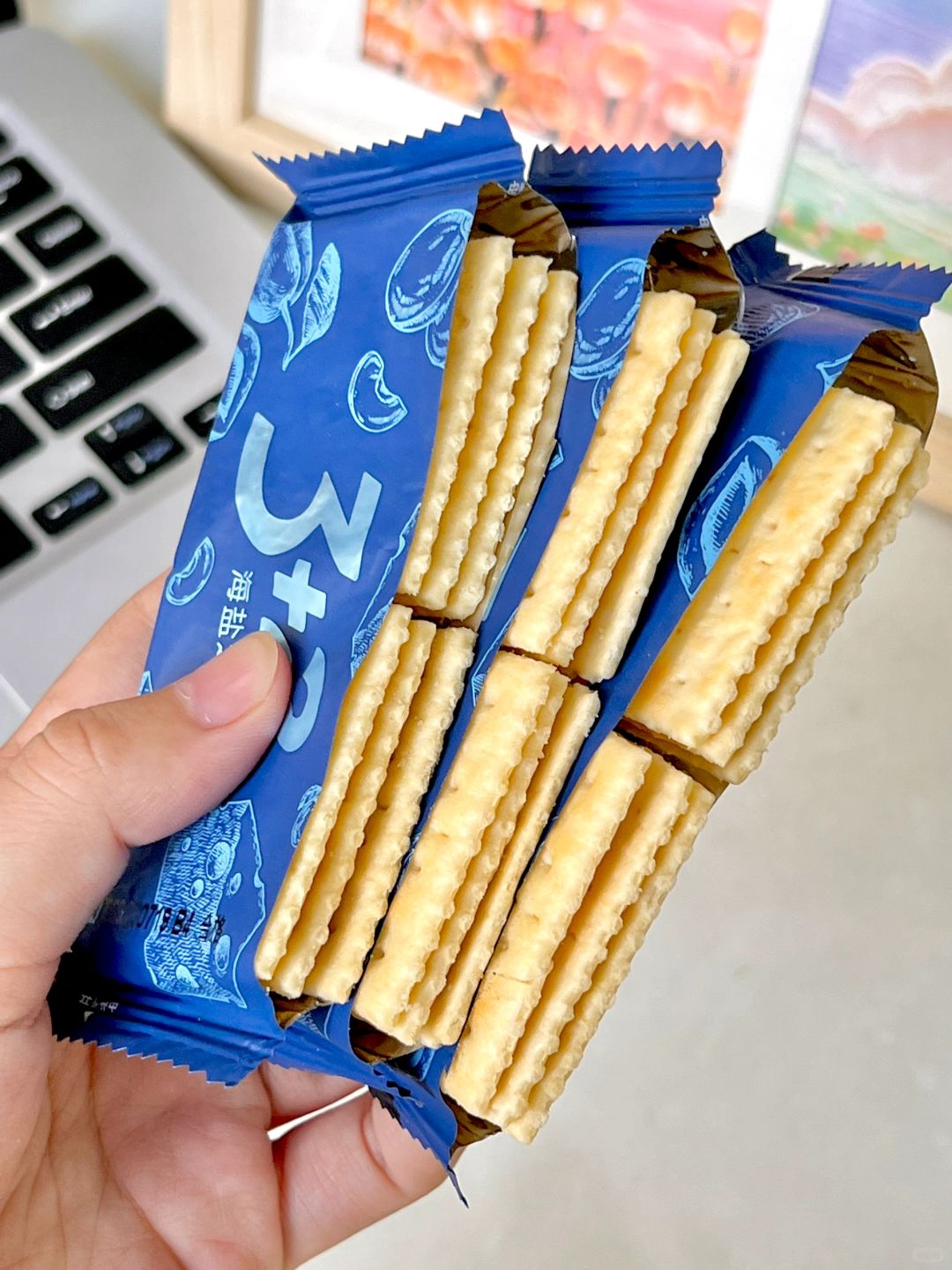 一共有三层苏打饼干 两层海盐芝士夹心 🤤越嚼越香!