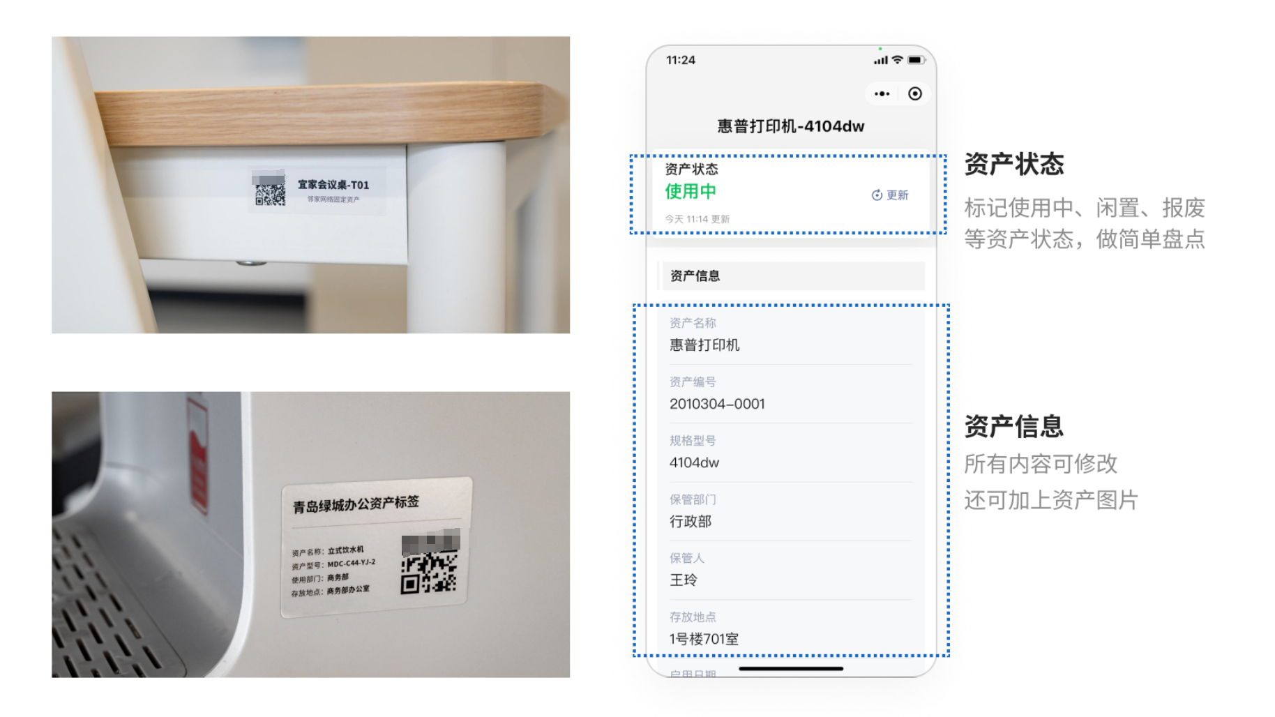 跨部门协同,责任明晰过去,设备使用和管理常因为跨部门而责任模糊,比如电脑由信息技术组采购,却由教务处统一维护,若设备损坏难以界定问题环节。现在,通过二维码建档,每件设备在录入时就绑定了采购部门、使用部门和责任教师,一旦出现问题,可溯源、可追责。 此外,设备的维护周期和报修记录也会被实时记录在案,每次扫码报修、维修完成后更新状态,系统自动保存变更历史,形成完整的资产生命周期数据链。这种方式避免了口头交接和手写登记的不确定性,管理责任边界更加清晰。