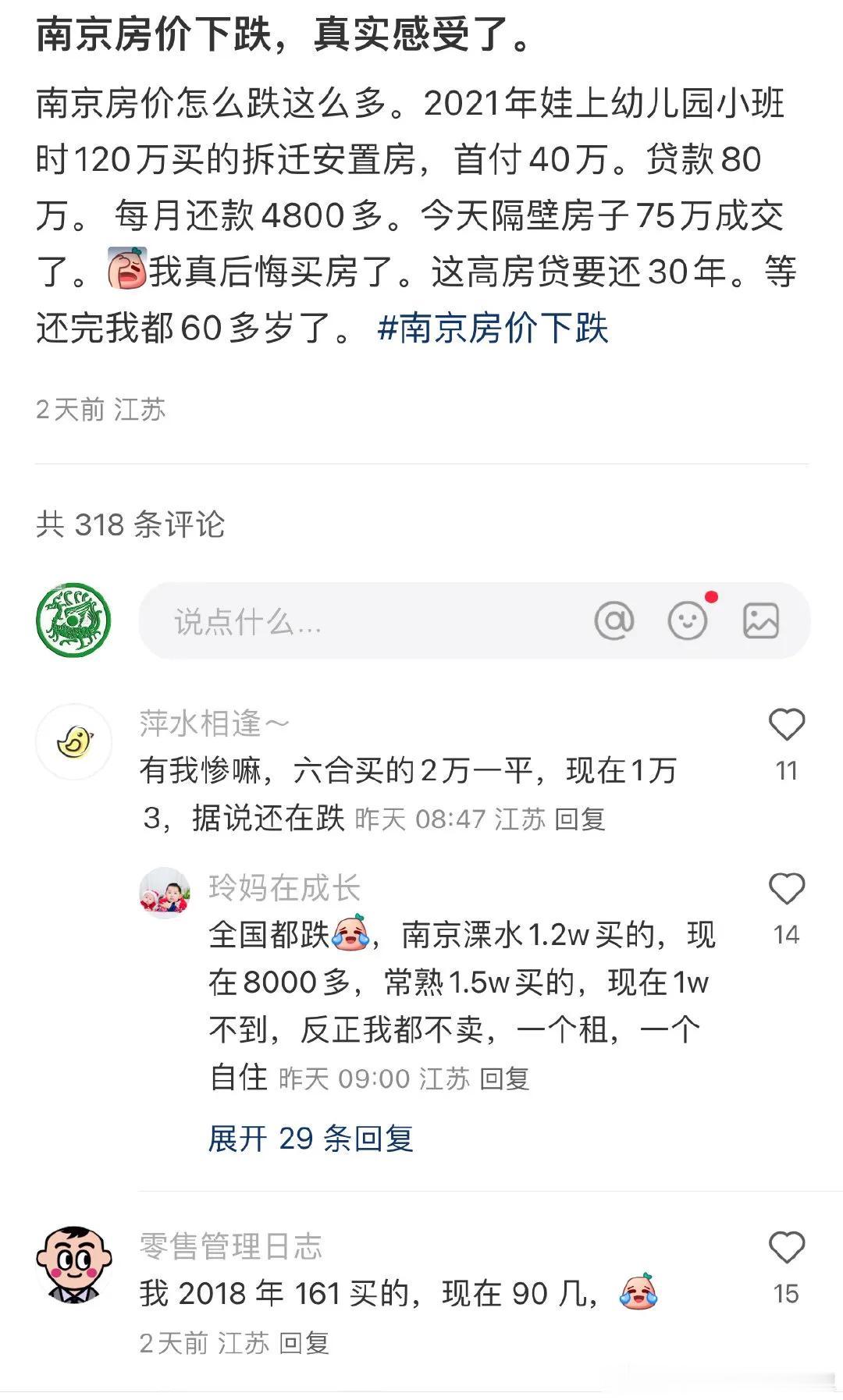 看了下网上关于房价的实际体验,只能说现在身边已经没有人谈房子了,而且开始形成一种买房就是亏钱的心态,当然我们这里是三四线小城市,对于一线城市不具备什么参考意义,但房价还想继续涨,那也只会是极少数城市的部分区域有这种可能了。