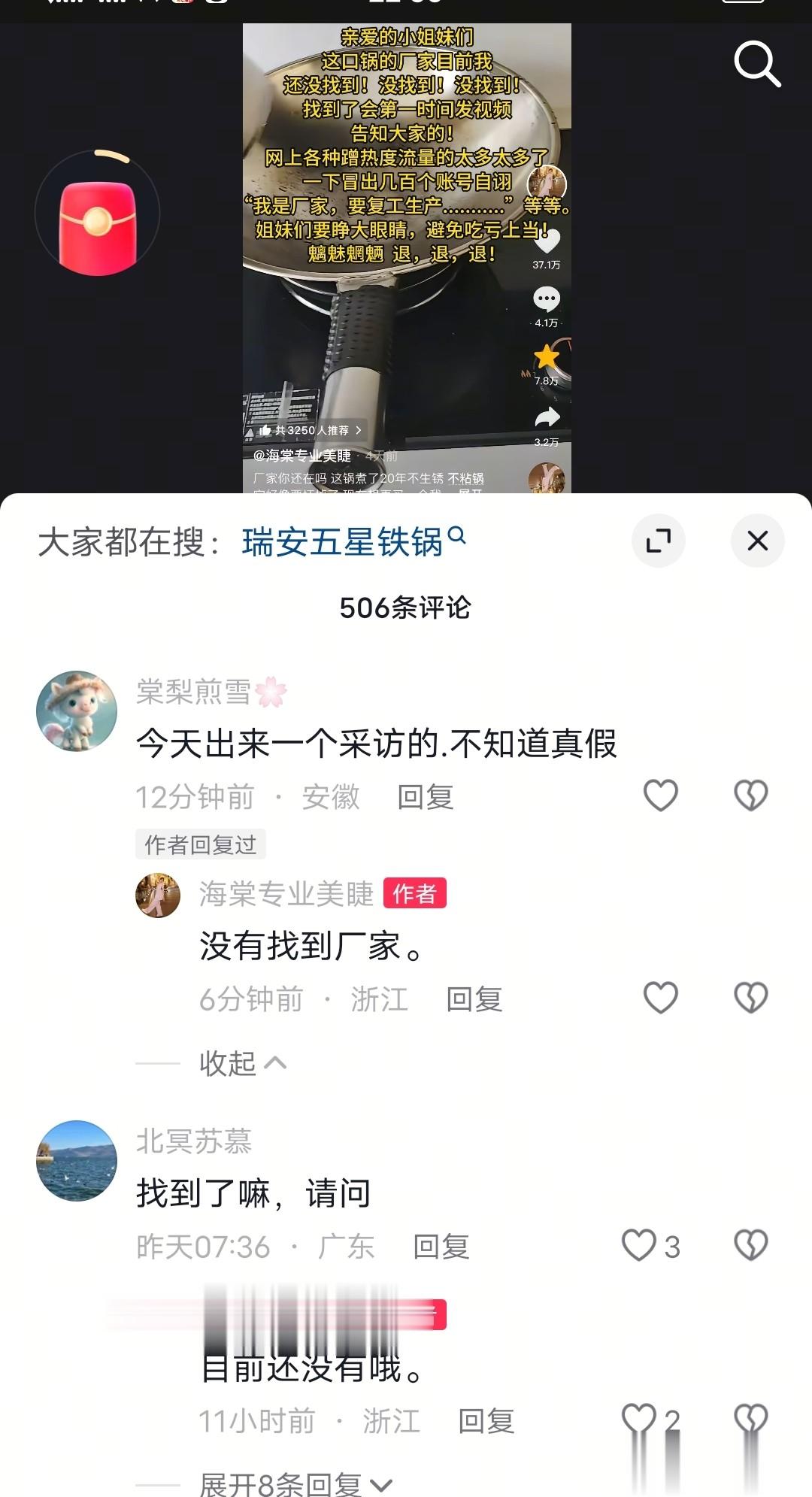 有些蹊跷的是厂家自称联系上了发视频寻锅的女博主。