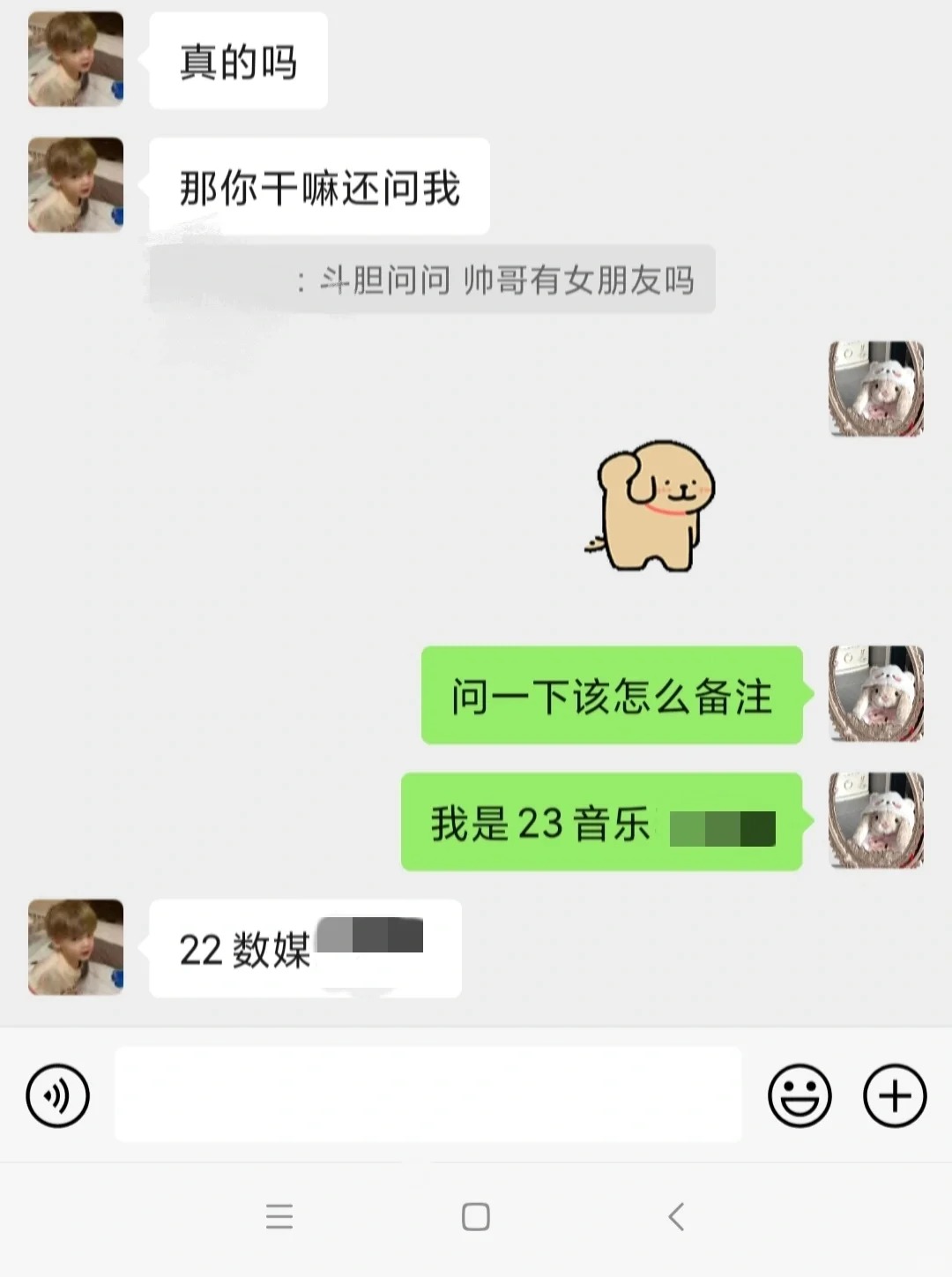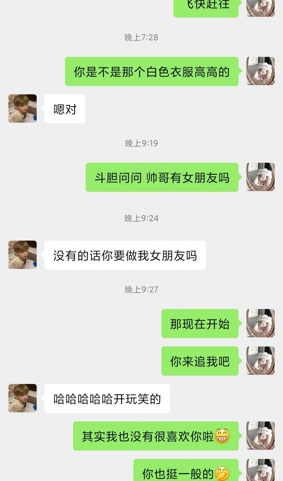 拿错外卖也能收获一个大帅哥crush?怎么聊 今天拿外卖太着急拿错了打电话给外卖小哥,加了那个人的微信还回去,发现竟然是个高个子的帅哥!! 皮肤又白又好五官立体!穿着白色卫衣和杏色长裤特别阳光帅气啊啊啊啊!真的心里扑通扑通乱跳!站在宿舍楼下看着就是个宽肩帅哥!我递外卖给他的时候感觉他也盯着我看了几秒 怎么办?已经想象到我们以后在一起后宿舍楼下接吻的美好画面了救命!! 打住打住,还是想想怎么继续聊天吧!求求姐妹们支支招不知道接下来该怎么聊,好久没有这种怦然心动的感觉了,好喜欢不想错过