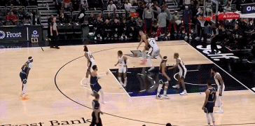 NBA赛场镜头:约基奇还是太温柔了,对文班还是有爱的! 别人都是duang一下撞在文班亚马身上,把文班撞一趔趄,约基奇是贴着文班,就跟拱他一样,感觉没怎么发力,是怕伤到文班吗? 这样的结果就是没顶开空间,依然被文班长臂干扰!