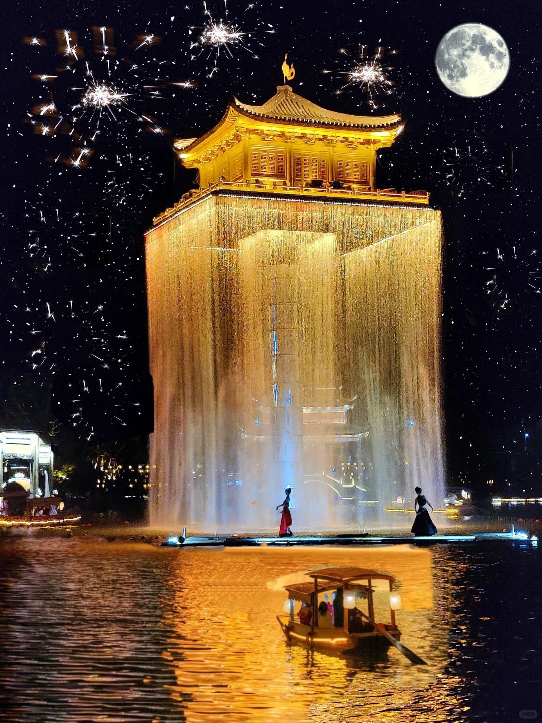 来到婺女洲好似进入了仙侠世界,夜晚铁花散漫人间,烟火灿烂点亮小城,醉后不知天在水,火树银花不夜天