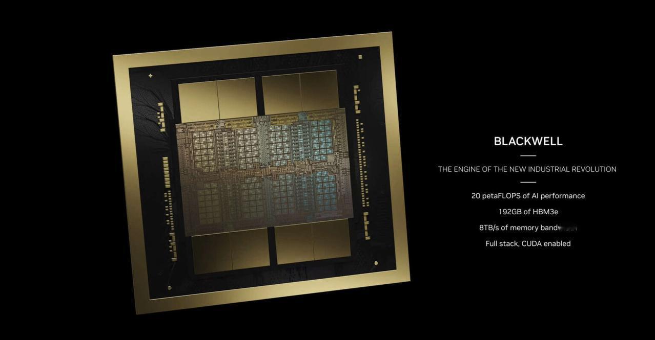 NVIDIA Blackwell GPU发布了,台积电4nm工艺,将两个GPU核心组合在一起,晶体管数量来到了2080亿个,显存则是192GB的HBM3e显存,带宽高达8TB/s,和之前的H100相比,新的GPU具有其5倍的AI性能,达到了2万TFLOPS,也就是每秒20千万亿次浮点运算,这次的性能提升的确很大,不过国内的企业只能看看就好,这个东西肯定不会出口到国内。 国内的AI芯片只能寄希望于华为了,虽然华为的AI芯片和英伟达的相比差距很大,但什么事情都不是一蹴而就的,先把自己的生态建立起来,让产品变得更加好用,机会肯定会有的。