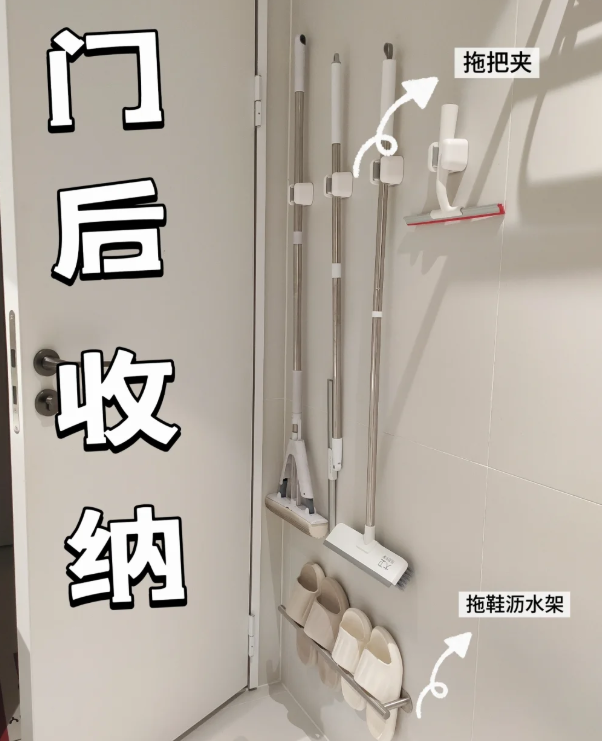 生活中用到的清洁工具,你全部都能嵌入到上面,很好用,关键还不会影响正常开关门,想要注重美观,我们在挑选清洁工具时,尽量去选择同色系。