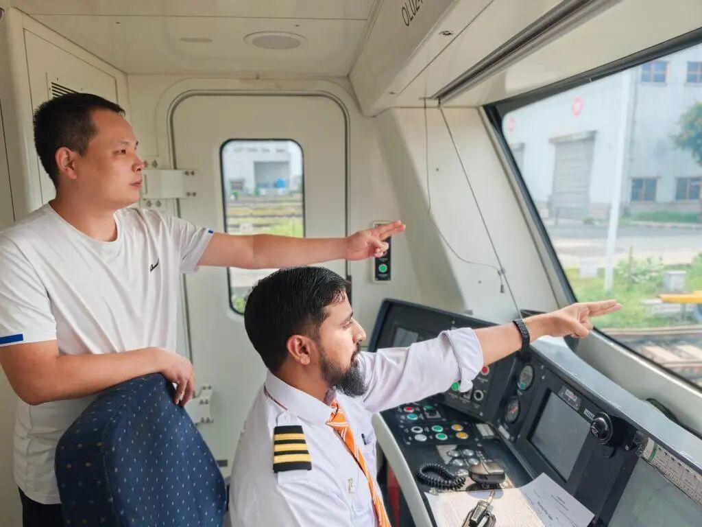 这是巴基斯坦拉合尔轨道交通橙线项目的中方员工培训巴方司机的资料照片。新华社发(广州地铁集团供图)