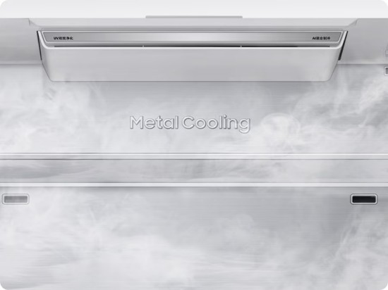 再配合均匀制冷的金属速导冷背板,金属材质的高导热性可快速平衡舱内温度,即使频繁开门取物,也能高效蓄冷,抑制细菌滋生,让食材从存储到食用全程安全可控。UV 双效净化系统则是隐形的“卫生屏障”,在抗菌的同时能够高效分解异味分子,让冰箱内始终保持洁净清新。
