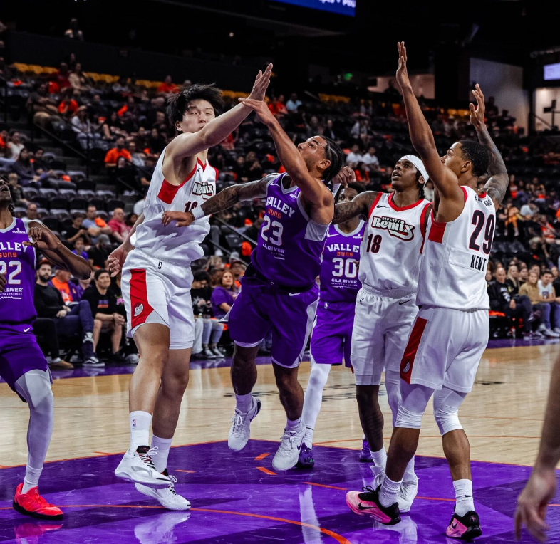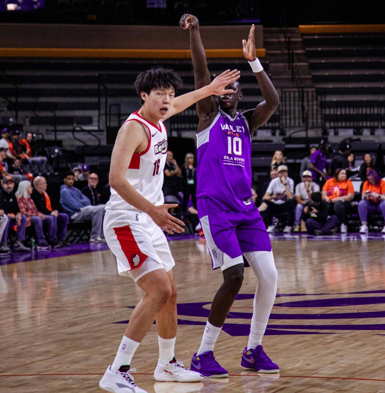 在被下放至撕裂之城混音队的次日,杨瀚森便如一颗璀璨新星般,迅速迎来了自己在发展联盟的首秀,且毫无悬念地以首发球员的身份闪耀登场。值得一提的是,今日的对手山谷太阳队,其首发中锋位置上派出的正是杨瀚森的好兄弟——今年首轮第10号秀马卢阿奇。