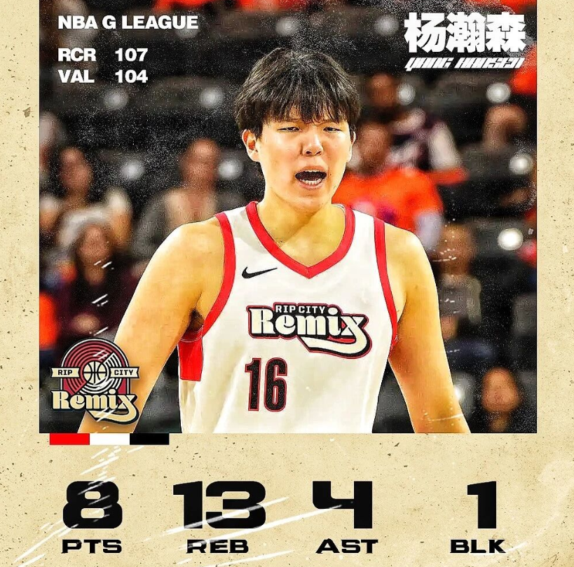 值得一提的是,此役是杨瀚森在G联盟的首秀。阿技给出的评分是A - 。上半场,他似乎还未完全跟上比赛的攻防节奏。然而下半场,在把握住教练安排的发牌策应战术后,他在场上的表现立刻从容许多,篮板、助攻、盖帽等方面均有亮眼发挥。全场比赛,杨瀚森出战29分钟,11次出手命中4球,砍下8分、13个篮板、4次助攻、1次抢断和1次盖帽。而且,在他出战的下半场,球队净胜24分。