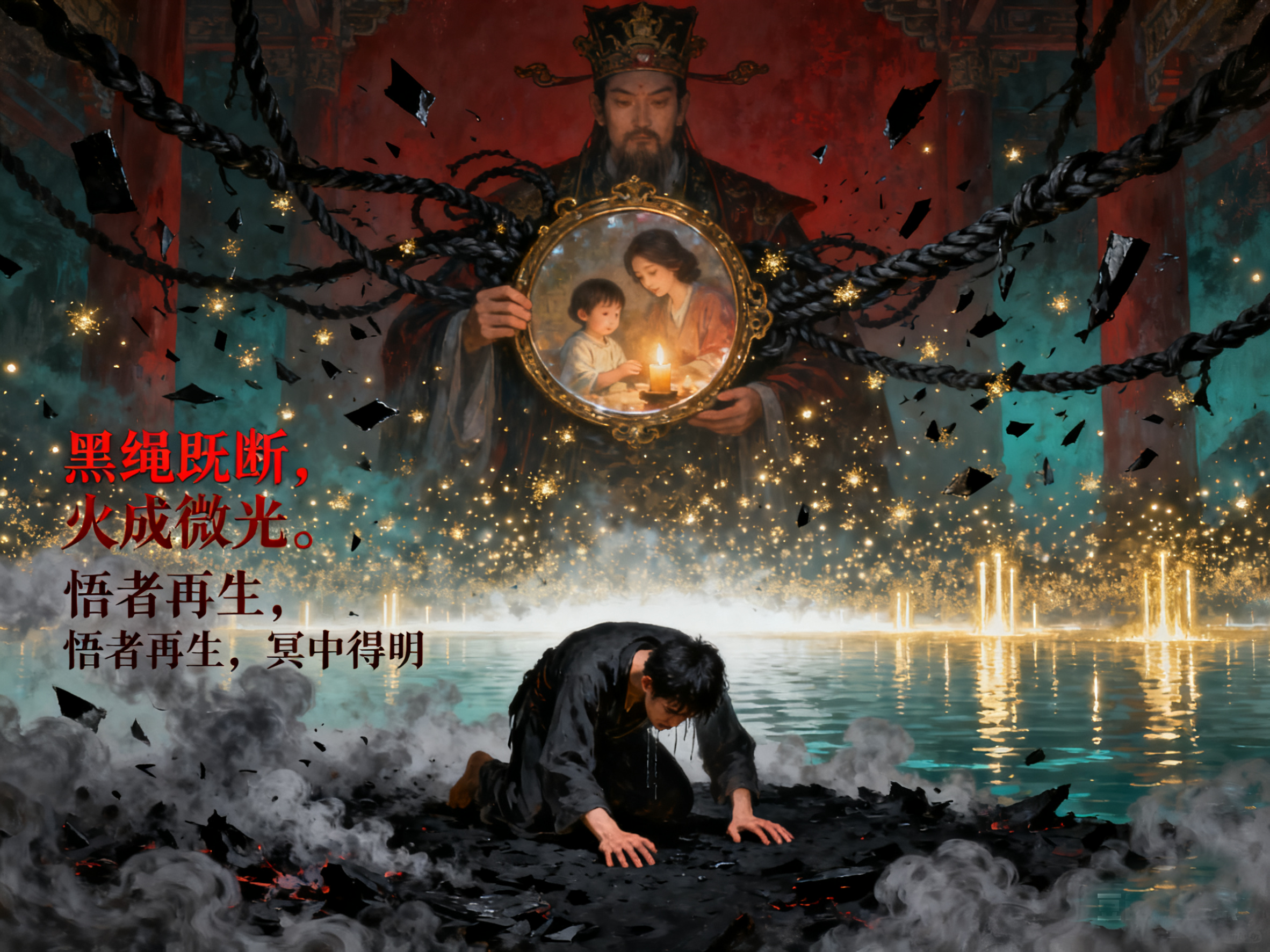 殿中寂然。宋帝王叹息:“黑绳不缠人,缠的是执。汝心不解,焰自不灭。”