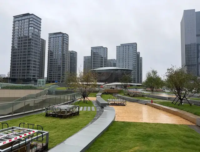 由于基地周边均为住宅、办公、商业、餐饮等业态,因此中央公园便成了城市中不可多得的绿洲。