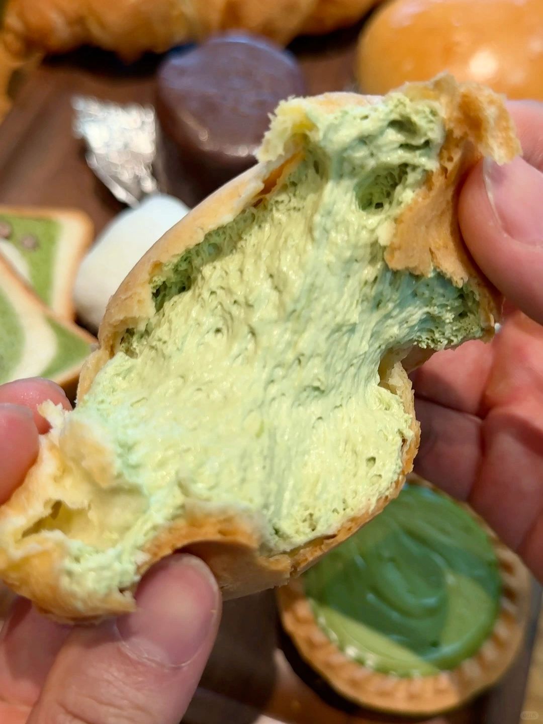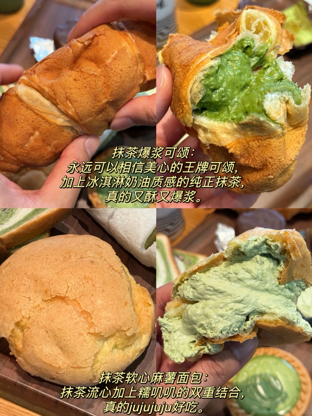 🍵抹茶爆浆可颂:永远可以相信美心的王牌可颂,加上冰淇淋奶油质感的纯正抹茶,真的又酥又爆浆。