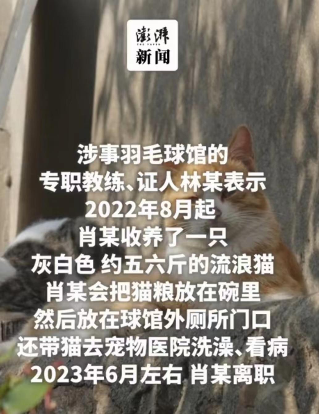 这天,在羽毛球馆上班的肖丽,在工作时,发现一只小猫不紧不慢地跟着自己,还发出“喵……喵“的叫声。