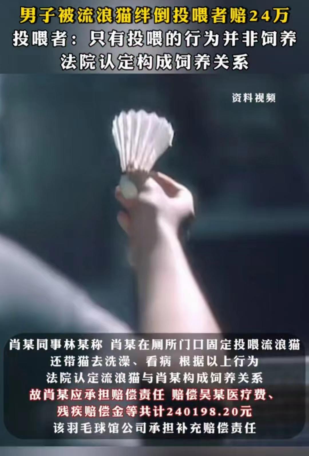 也有网友认为:“法院对肖丽的判决有失公允,本身流浪猫出现在球场里,属于重大安全管理事故,球馆责无旁贷,应按照过错比例划分责任才合理。”
