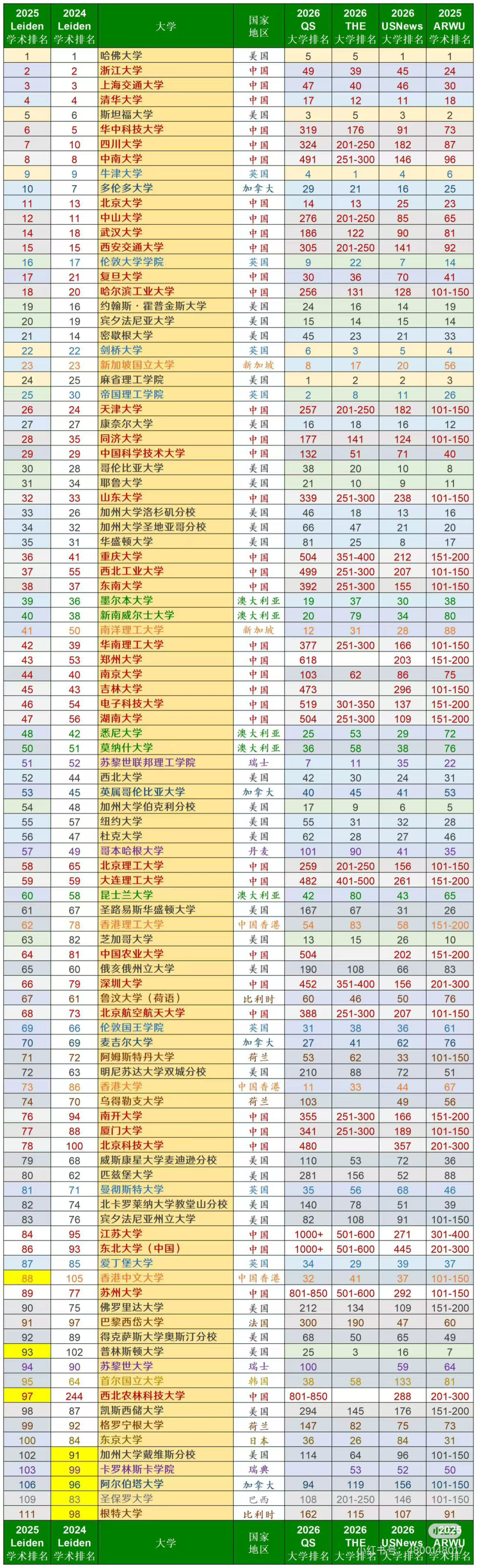 在层出不穷的全球大学排名体系中,荷兰莱顿世界大学学术排名(Leiden Ranking)以其独特的视角和严苛的标准,一直被视为衡量高校纯粹学术研究实力和顶尖论文产出的“试金石”。莱顿排名不看声誉、不看资金、不看学生数量,它仅仅依赖Web of Science数据库中的论文数据,根据各大学发表的论文在全球引用量中的百分比(如前1%、前5%、前10%)来排序。这种方法论直接穿透了大学的“光环”,直指科研的本质——学术影响力和质量。因此,莱顿排名的含金量在于其对高校“硬核”科研产出的精准捕捉,是检验一所大学在全球学术共同体中话语权和贡献度的重要指标。