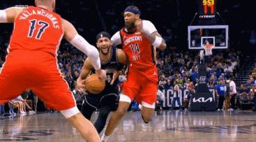 NBA赛场镜头:鹈鹕球星英格拉姆左腿来了这么一下,看着都疼! 看着是真疼啊,