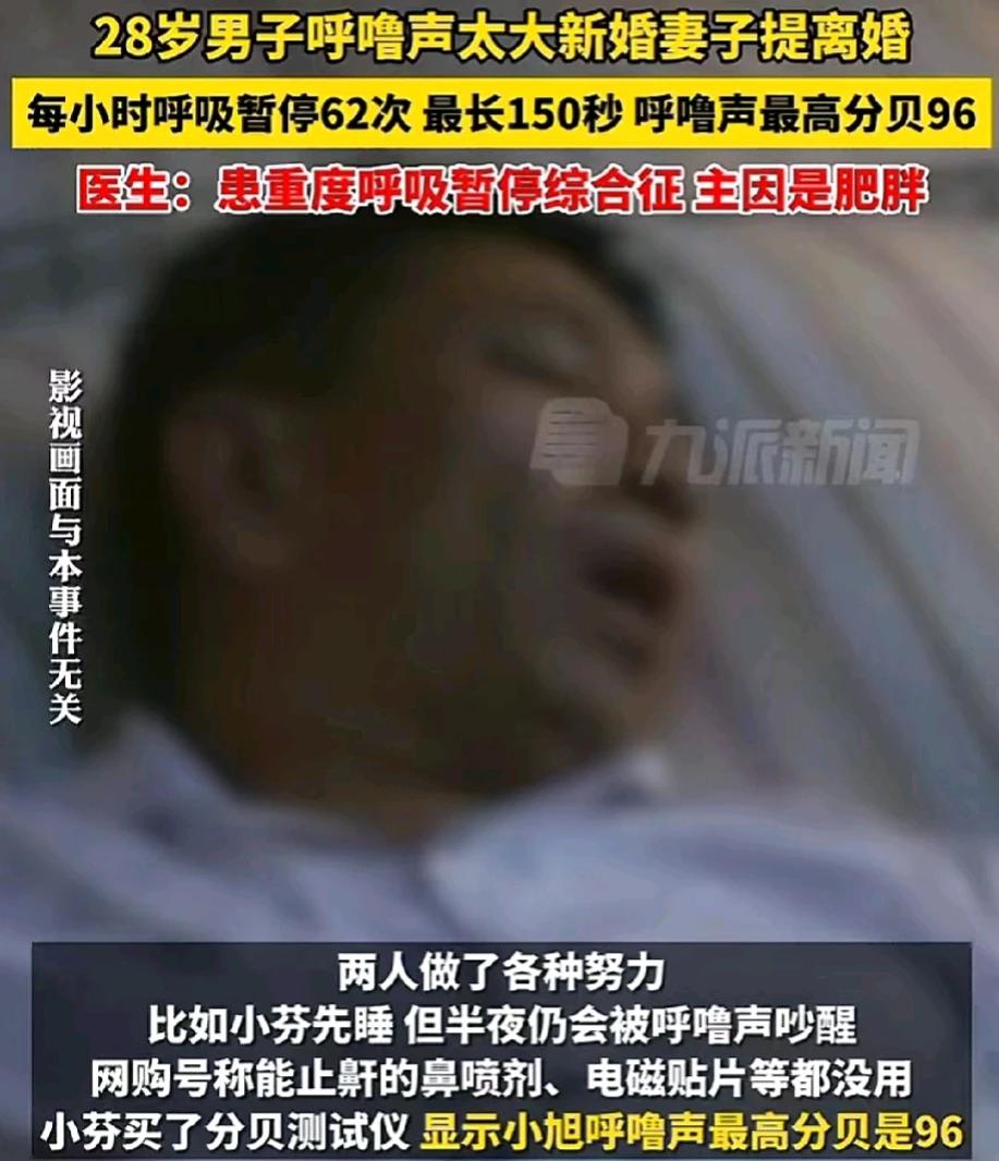 小芬购买了一个分贝测试仪,一测试,丈夫小旭睡觉的鼾声最高分贝竟然高达96。