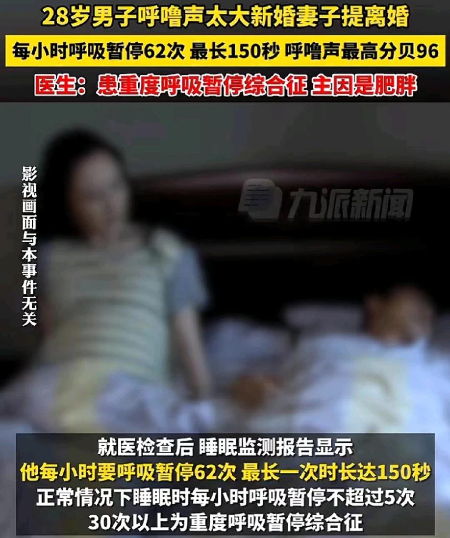 通过医生的诊断,小旭睡觉时每小时呼吸竟然要暂停62次,最长一次竟然要暂停150秒,与正常情况下睡眠每小时呼吸暂停不超过5次,形成鲜明的对比。